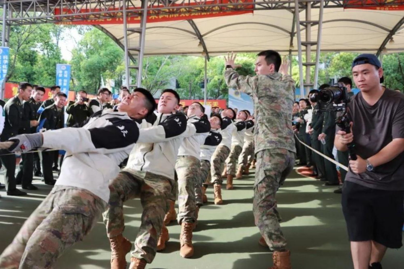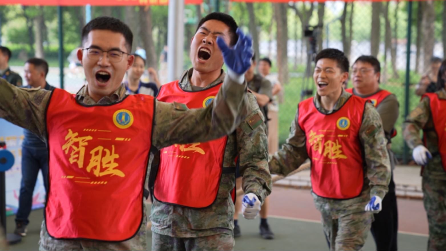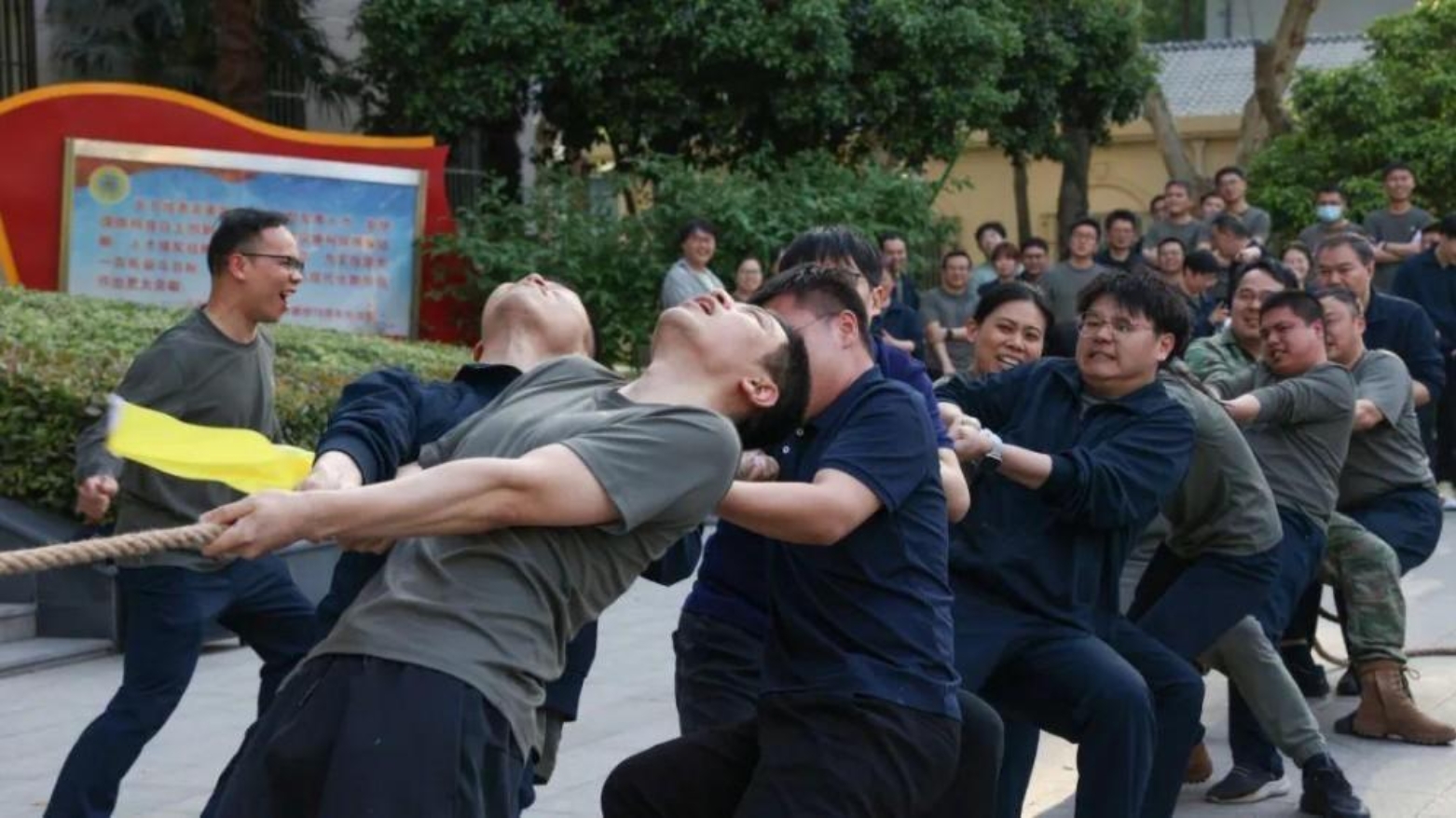 “一!二!拉!”震耳欲聋的口号声划破天空。在第六十三研究所国旗广场前,7支队伍以淘汰赛的形式展开角逐。经过激动人心的比拼,最终4支队伍成功晋级。