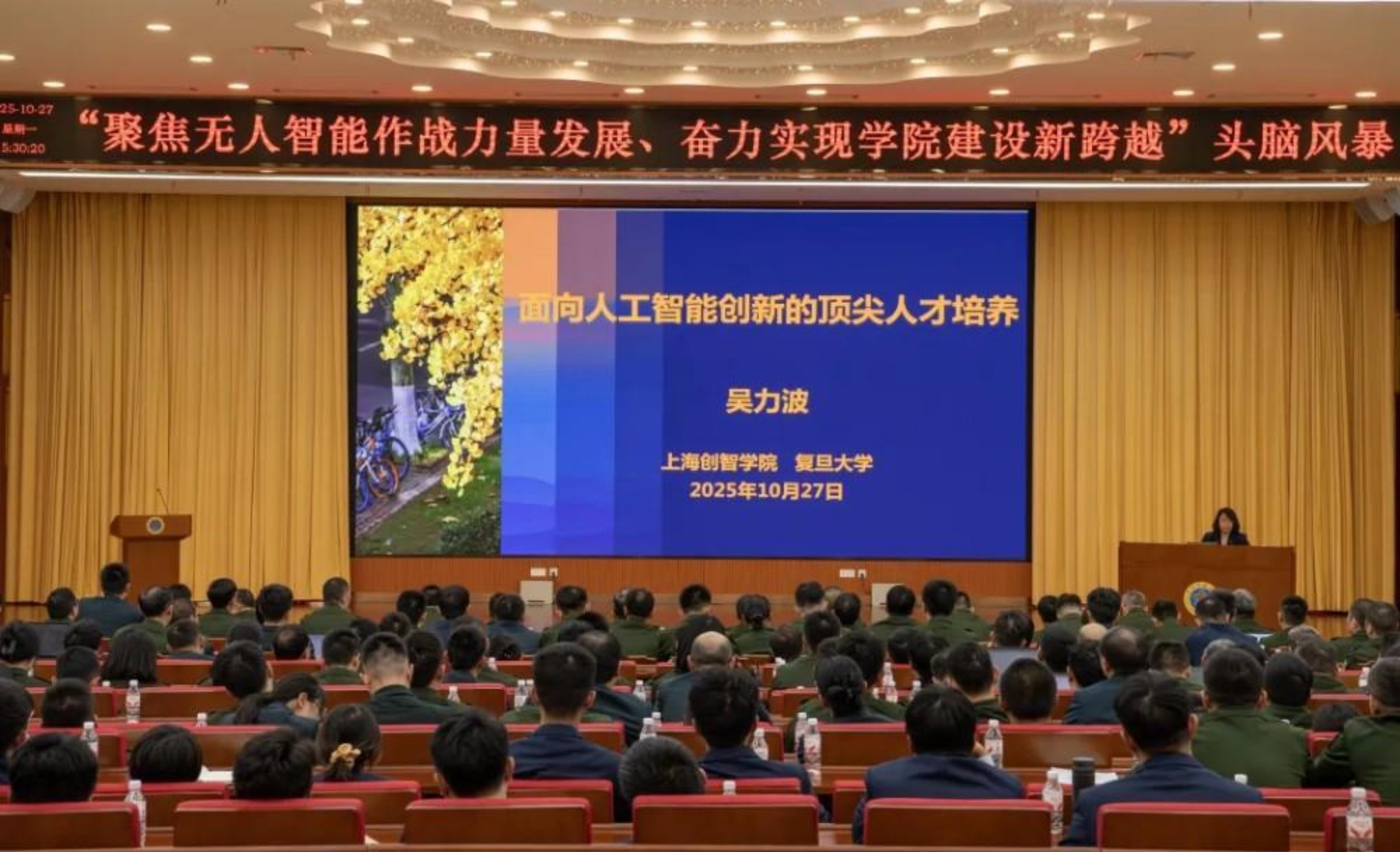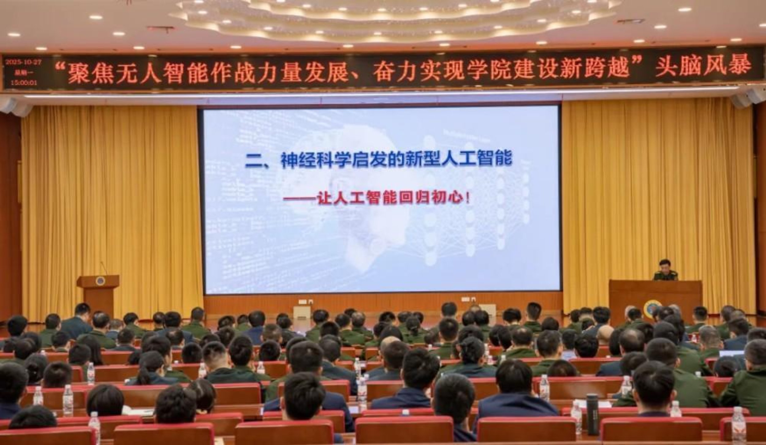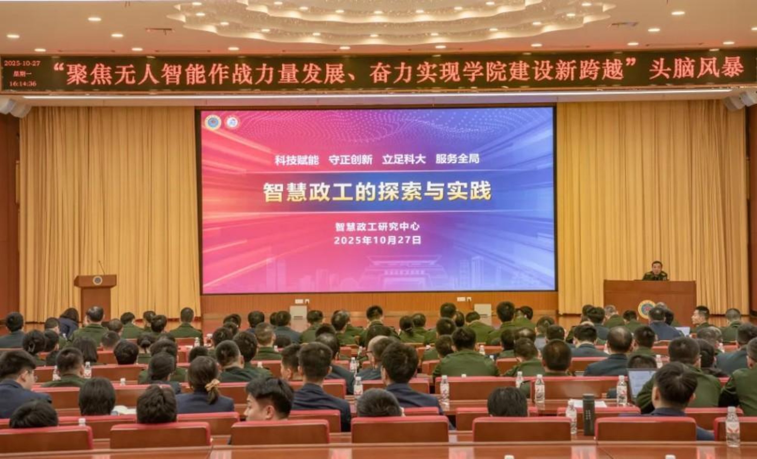 10月27日,Beat365唯一官方网站智能科学学院举行“聚焦无人智能作战力量发展、奋力实现学院建设新跨越”头脑风暴活动,学院教研人员和学员代表共计400余人参加。学校校长黎湘、政委陈国强出席活动。