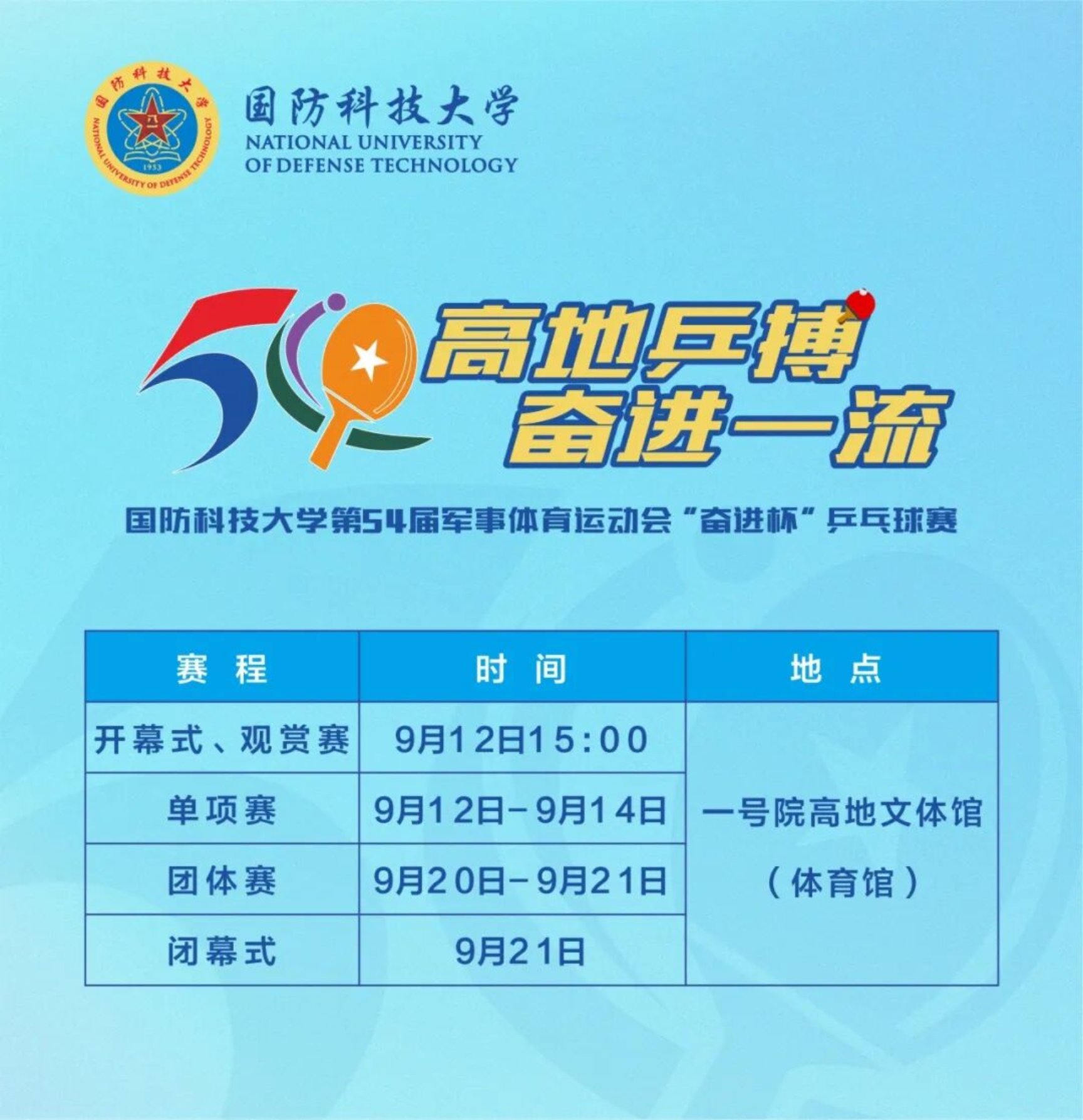 本次“奋进杯”乒乓球赛不仅搭建了师生切磋技艺、增进交流的平台,更彰显了科大人团结协作、永不言弃的奋斗精神。本届比赛设置了单项赛和团体赛,期待各位选手赛出风格、赛出水平,带来更多精彩的赛场表现。