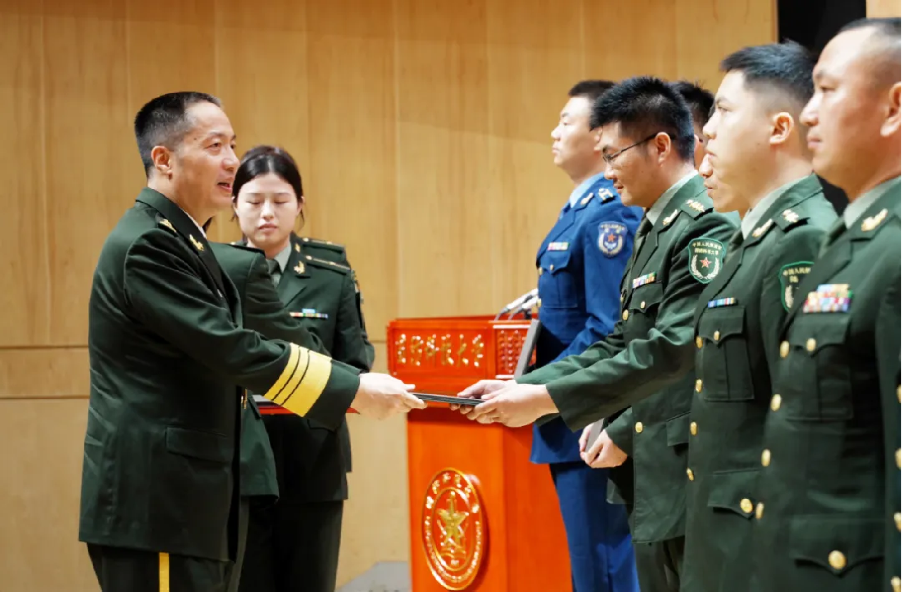 典礼结束后,主席台领导向全体毕业学员致以军礼,在嘹亮的冲锋号声中欢送他们出征;本科学员开展集体宣誓、毕业签名等活动,研究生学员举行博士硕士学位授予仪式。