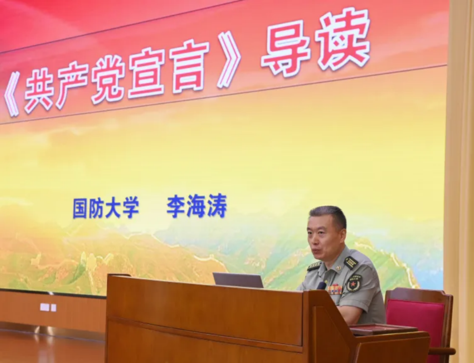 在中国共产党成立104周年之际,7月1日上午,学校举行“七一”主题党日集中党课辅导,邀请国防大学国家安全学院副院长、教授李海涛作《共产党宣言》专题导读。学校政委陈国强出席,并为李海涛颁发思政课指导专家荣誉证。