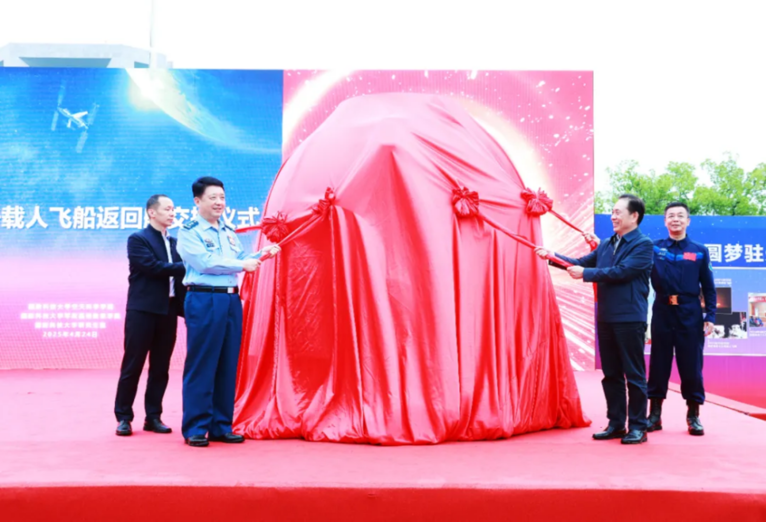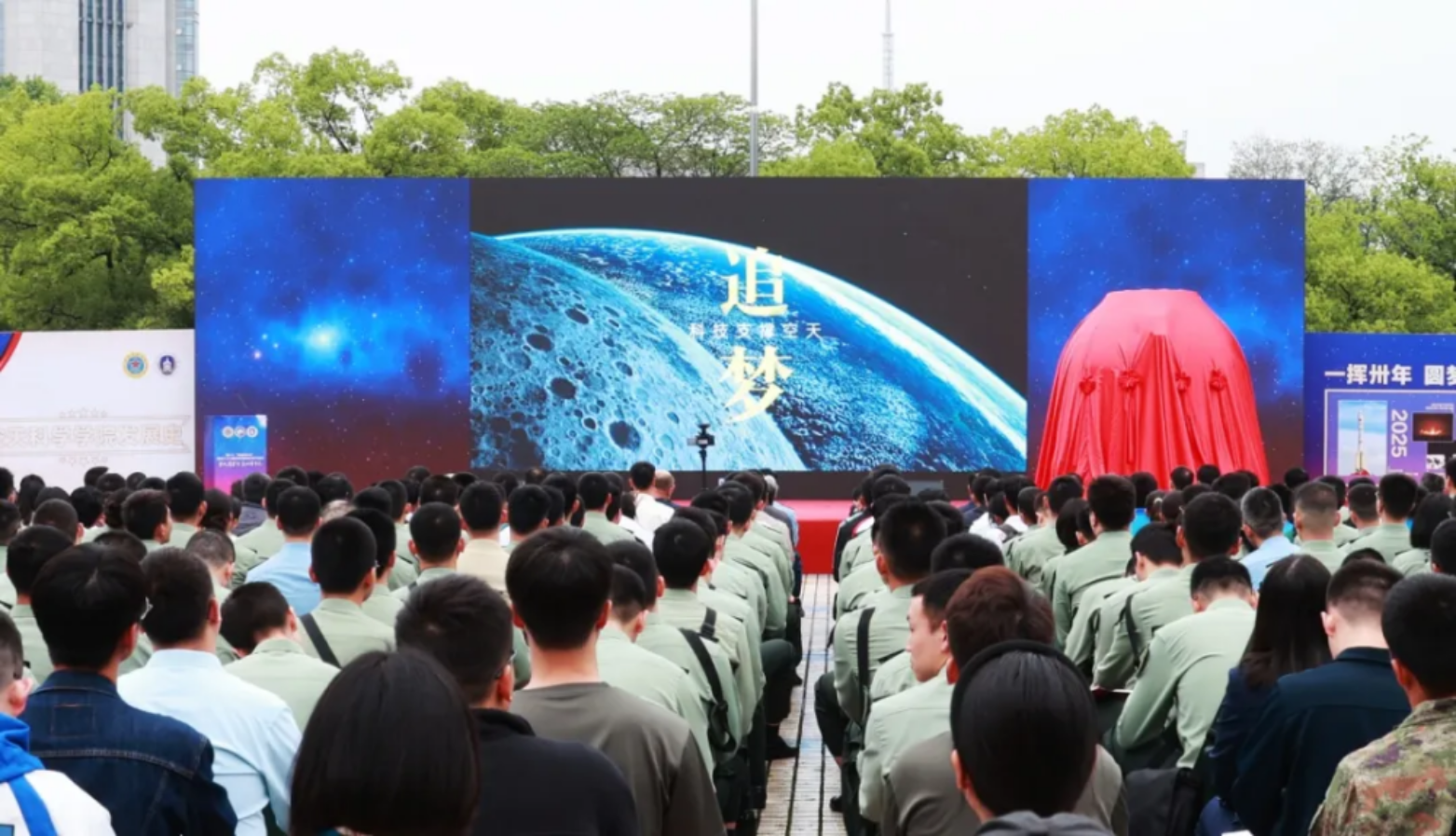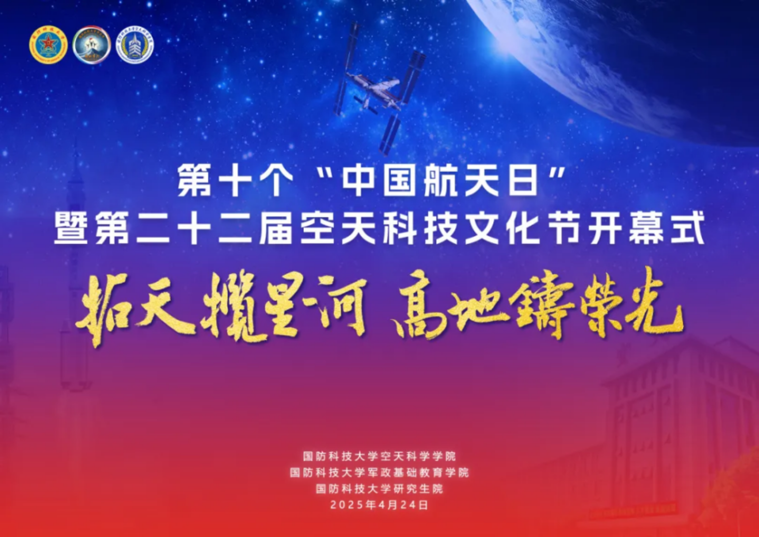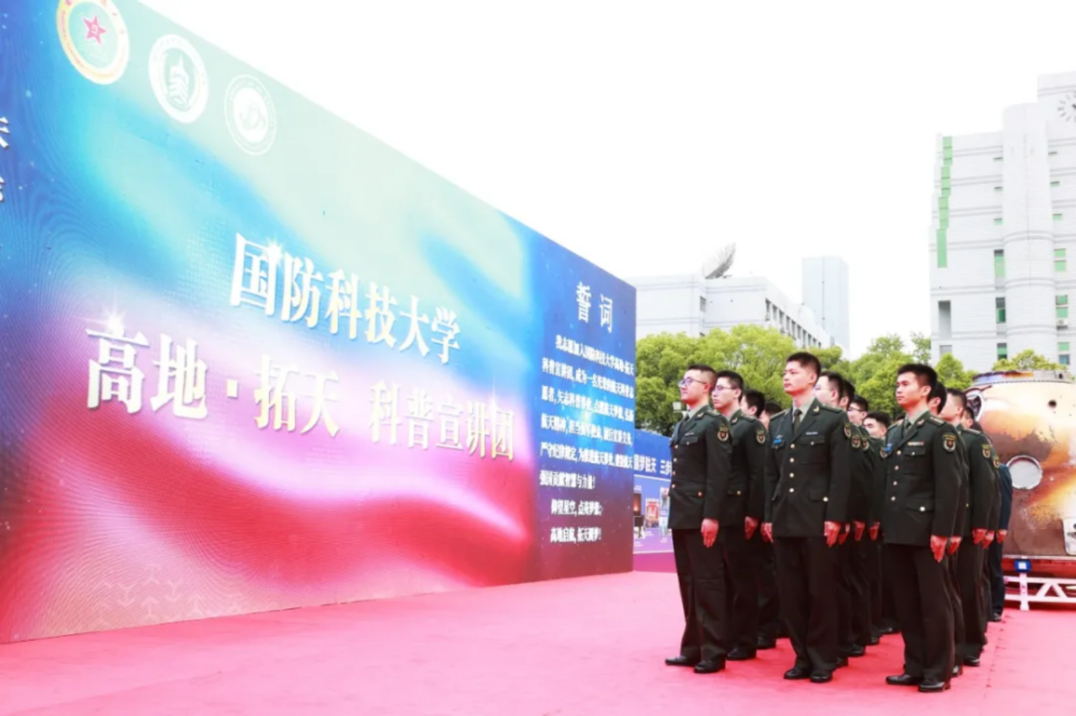 活动现场,空天科学学院宣布组建“高地•拓天”科普宣讲团,陈国强为“高地•拓天”科普宣讲团授旗,宣讲团举行出征宣誓,随即奔赴学校各生源基地中学开展航天科普宣讲。宣讲团以“知识传播为基、精神引领为魂、创新育人为本、服务国防为要”为宗旨,多年来坚持不懈把航天科普教育做得更深入、将航天梦想种子播得更辽远、让科学求索精神传得更广阔,为实现航天梦、强军梦源源不断吸引和注入新生力量,2024年获评全国科普工作先进集体。