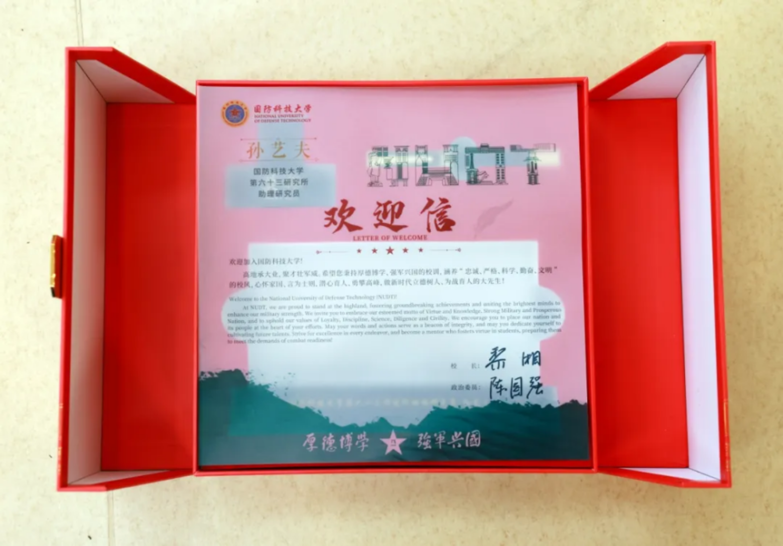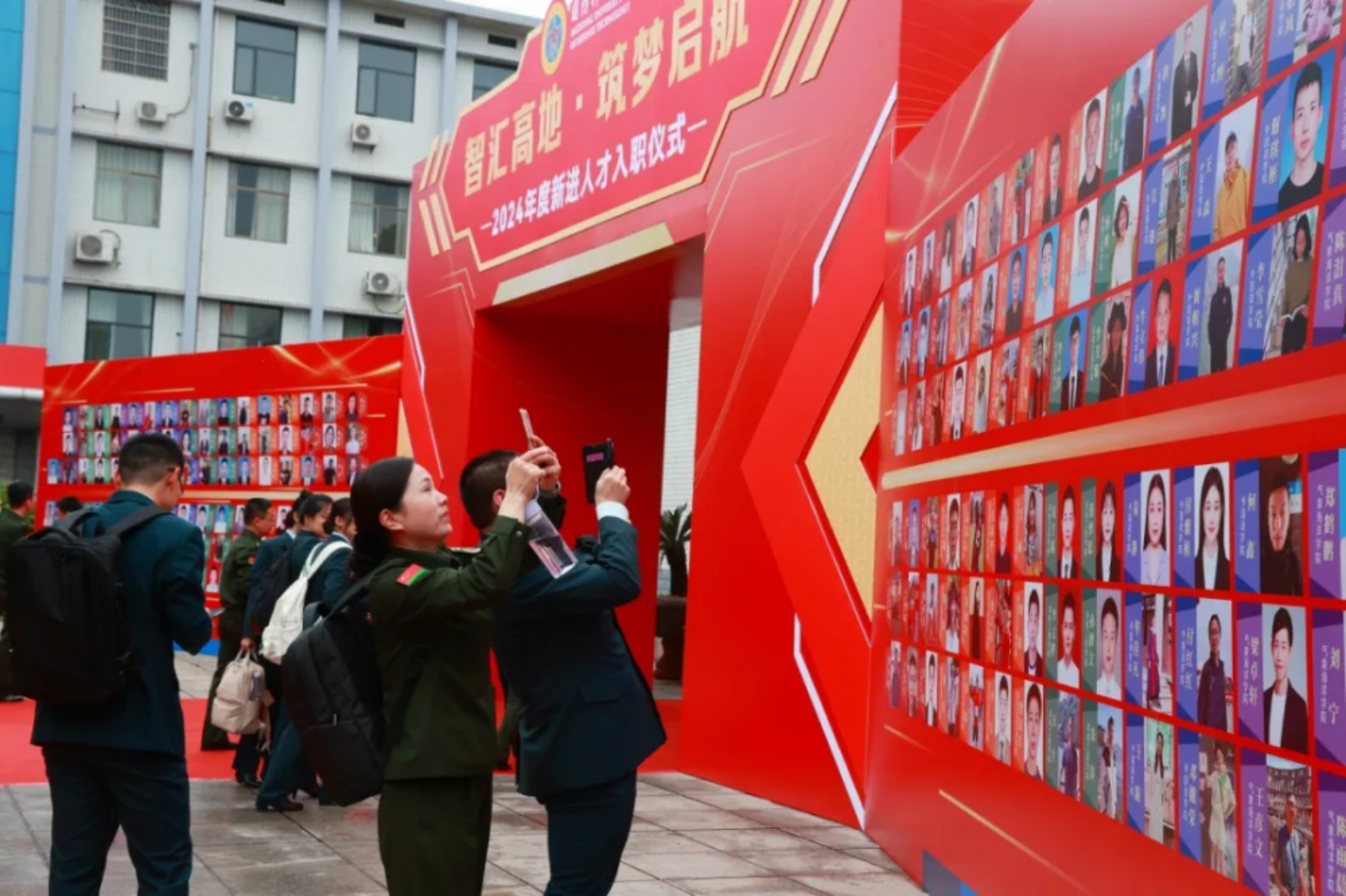 上午8时许,仪式在庄重豪迈的《高地荣光进行曲》中拉开帷幕。来自各院(所、基地)的近200名优秀人才仪容严整、依次列队,以昂扬的精神风貌步入学校学术成果馆门厅,校首长与引进国家级高层次人才握手,并与各单位新进人才合影留念。精心布置的环境氛围、精致厚重的入职大礼包、创意新颖的新进人才朋友圈,为大家带来惊喜和感动,也烘托出喜庆热烈的氛围。