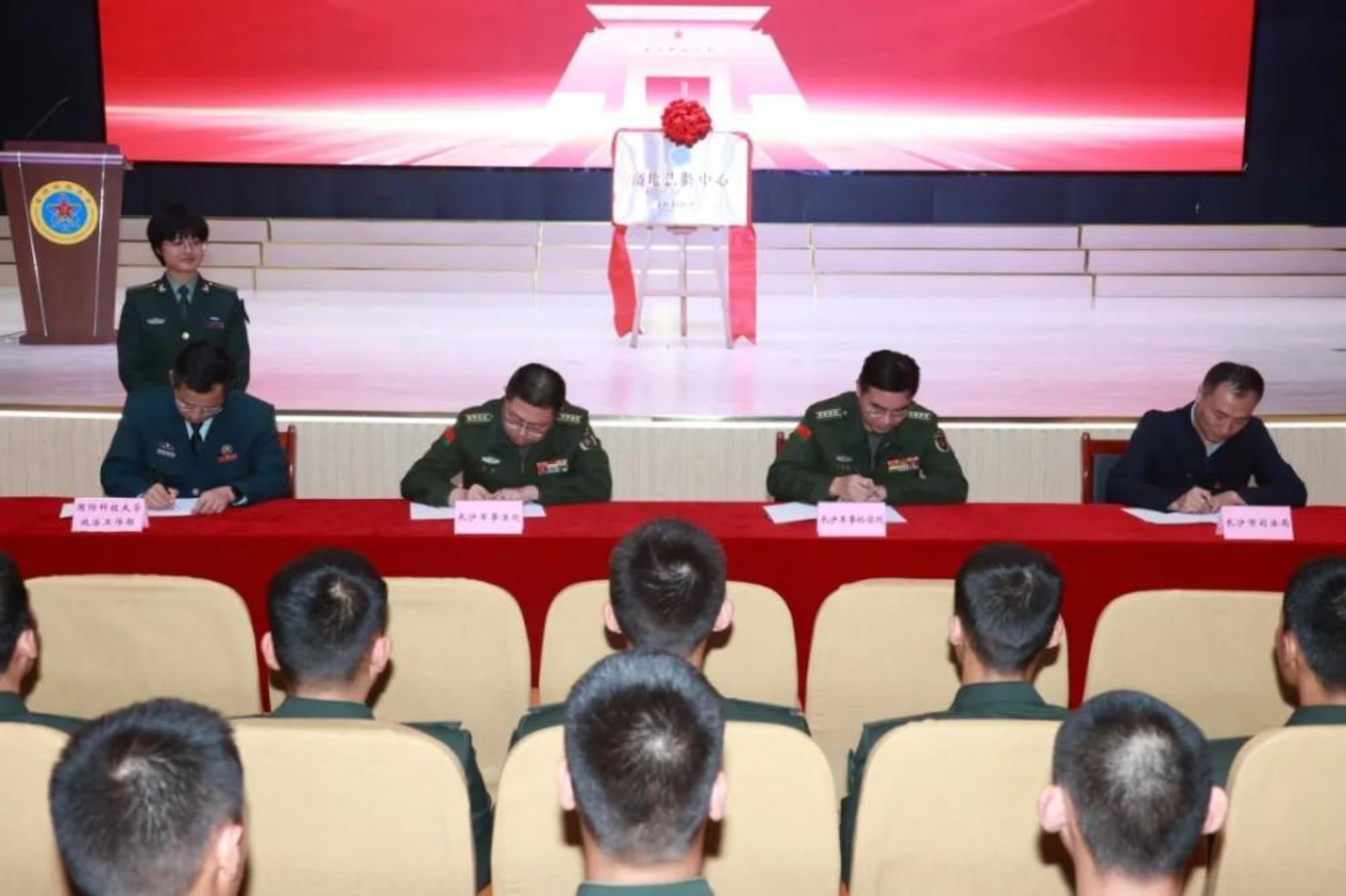 仪式期间,集中观看了学校形象宣传片《高地》,学校政治工作部与长沙军事法院、长沙军事检察院、长沙市司法局签署了《法治共建合作协议》。