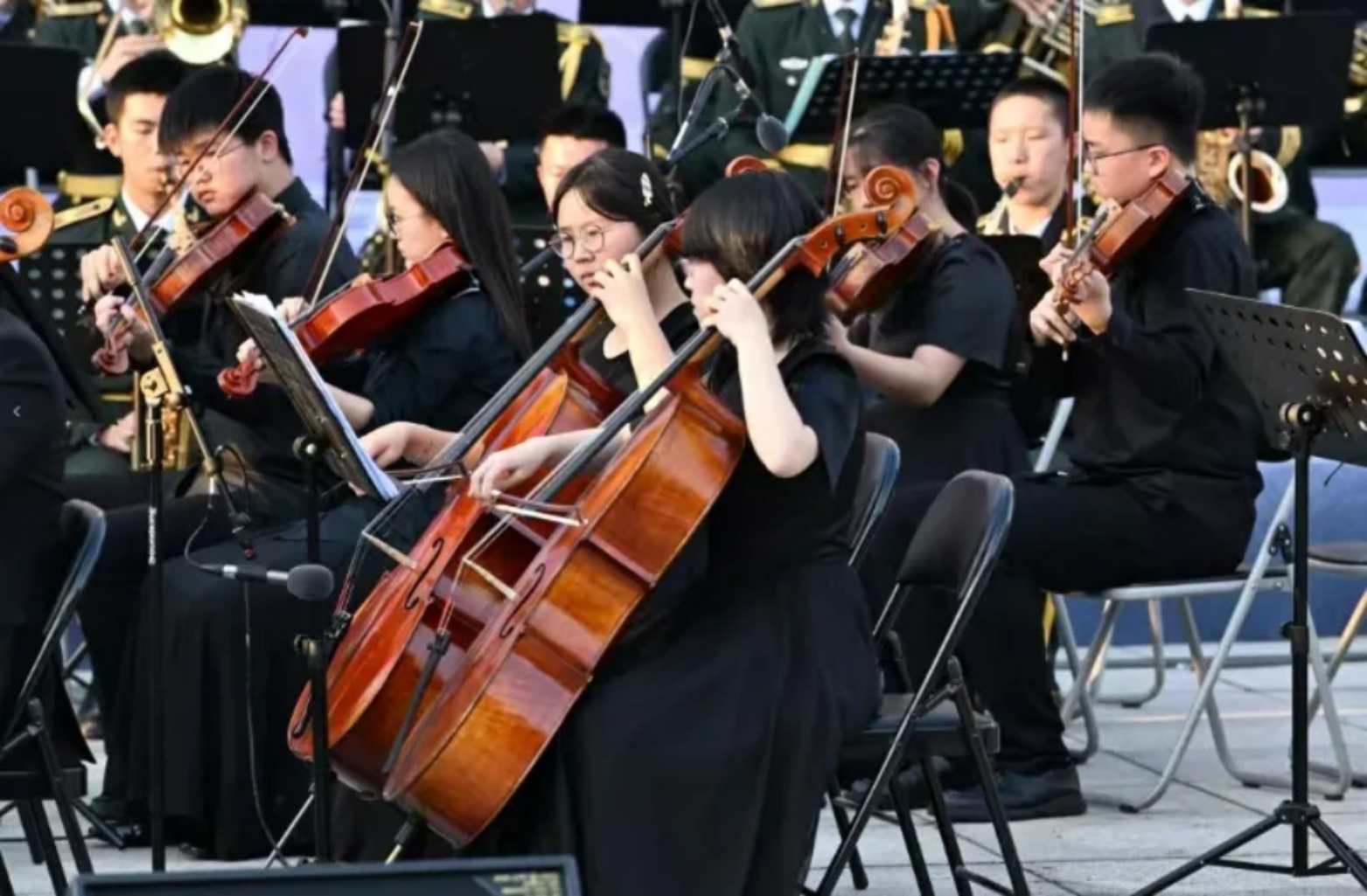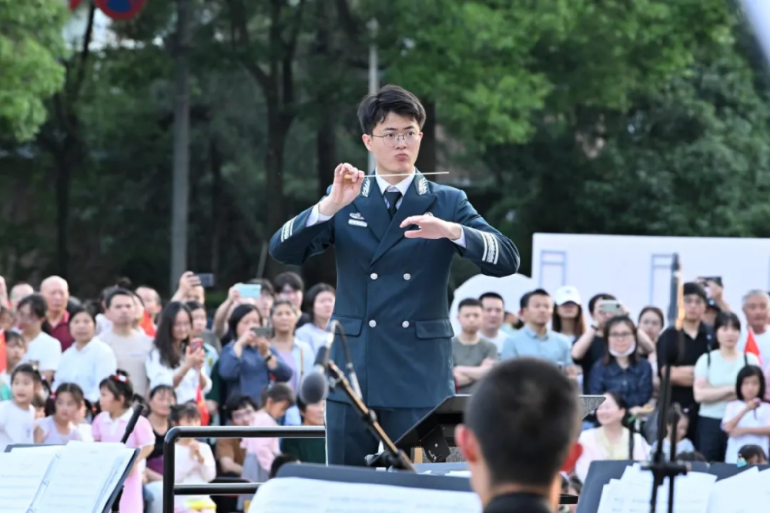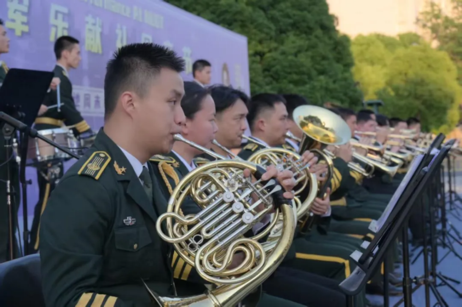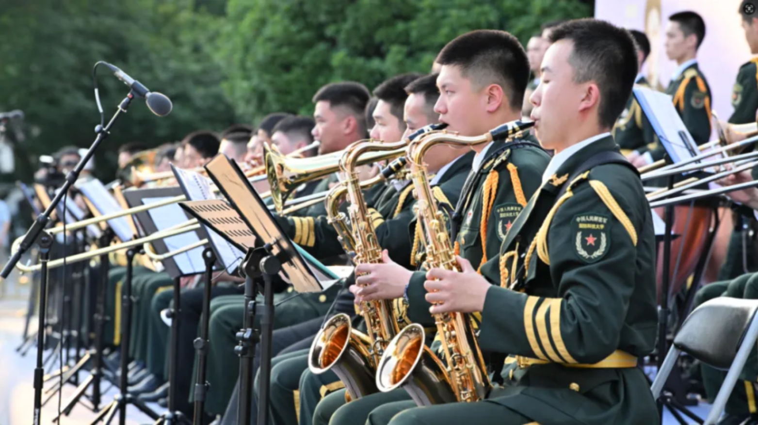 随后,在朱见光指挥执棒下,高地号角军乐团带来了《钢铁洪流进行曲》《人民军队忠于党》《人民海军向前进》《空军进行曲》《火箭军进行曲》《中国军魂》《强军战歌》《中国人民解放军军歌》等多首军旅乐曲。铿锵有力的乐曲,鼓点沉重如同钢铁战士行进,管乐齐鸣好似千军万马奔腾,生动地展现出钢铁洪流般的军队气势与坚韧力量。