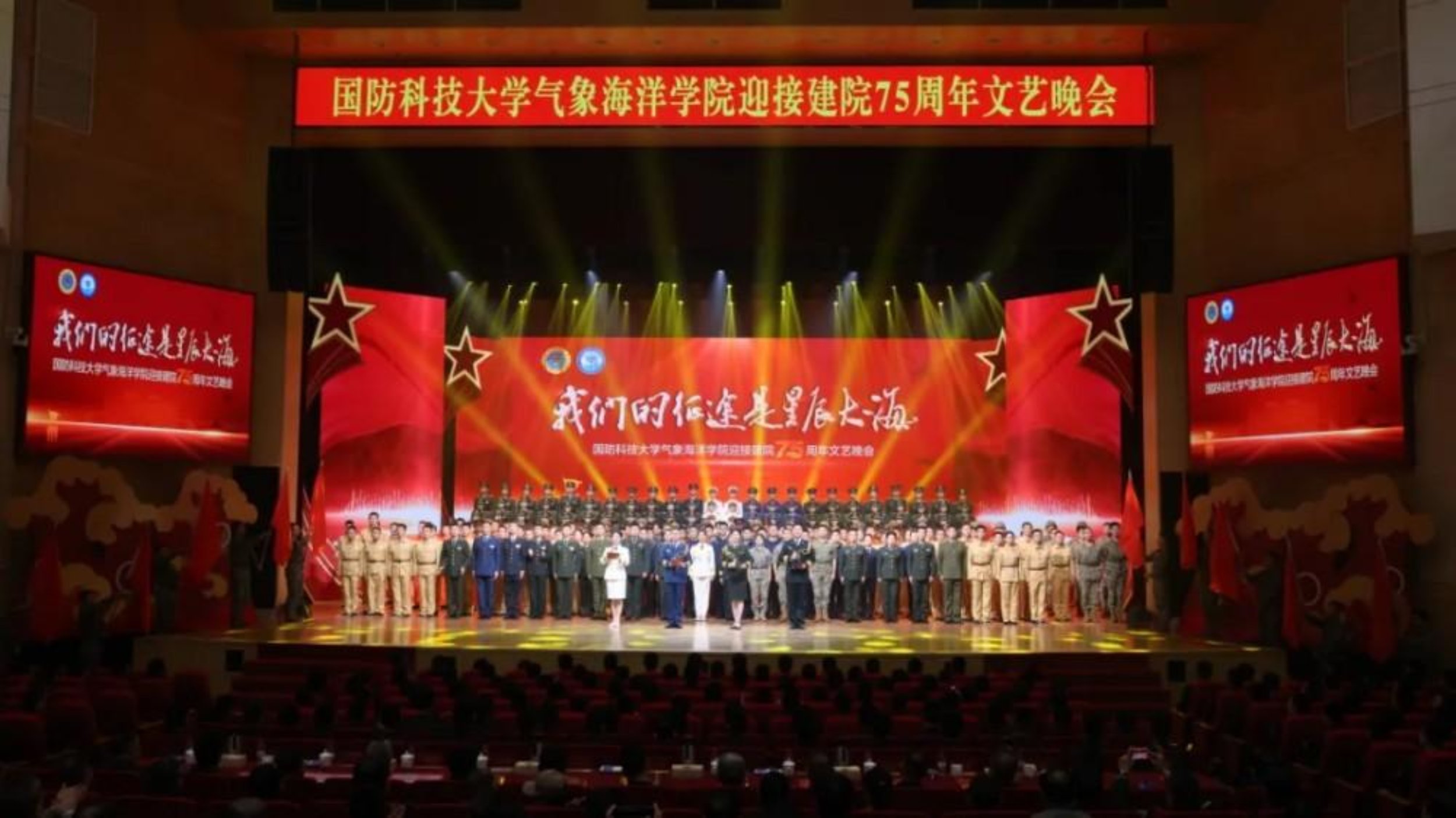 星光璀璨,盛会如约;弦歌不辍,继往开来。12月16日晚,Beat365唯一官方网站气象海洋学院迎接建院75周年文艺晚会在长沙校区三号院学术交流中心正式拉开帷幕。军委机关有关部门单位领导,学校领导,学校机关和兄弟单位领导,军地气象海洋领域领导、专家,学院老领导和校友代表等,与学院师生员工及家属代表欢聚一堂,在光影流转与歌舞交织中,共同回眸气象海洋学院七十五载办学历程。
