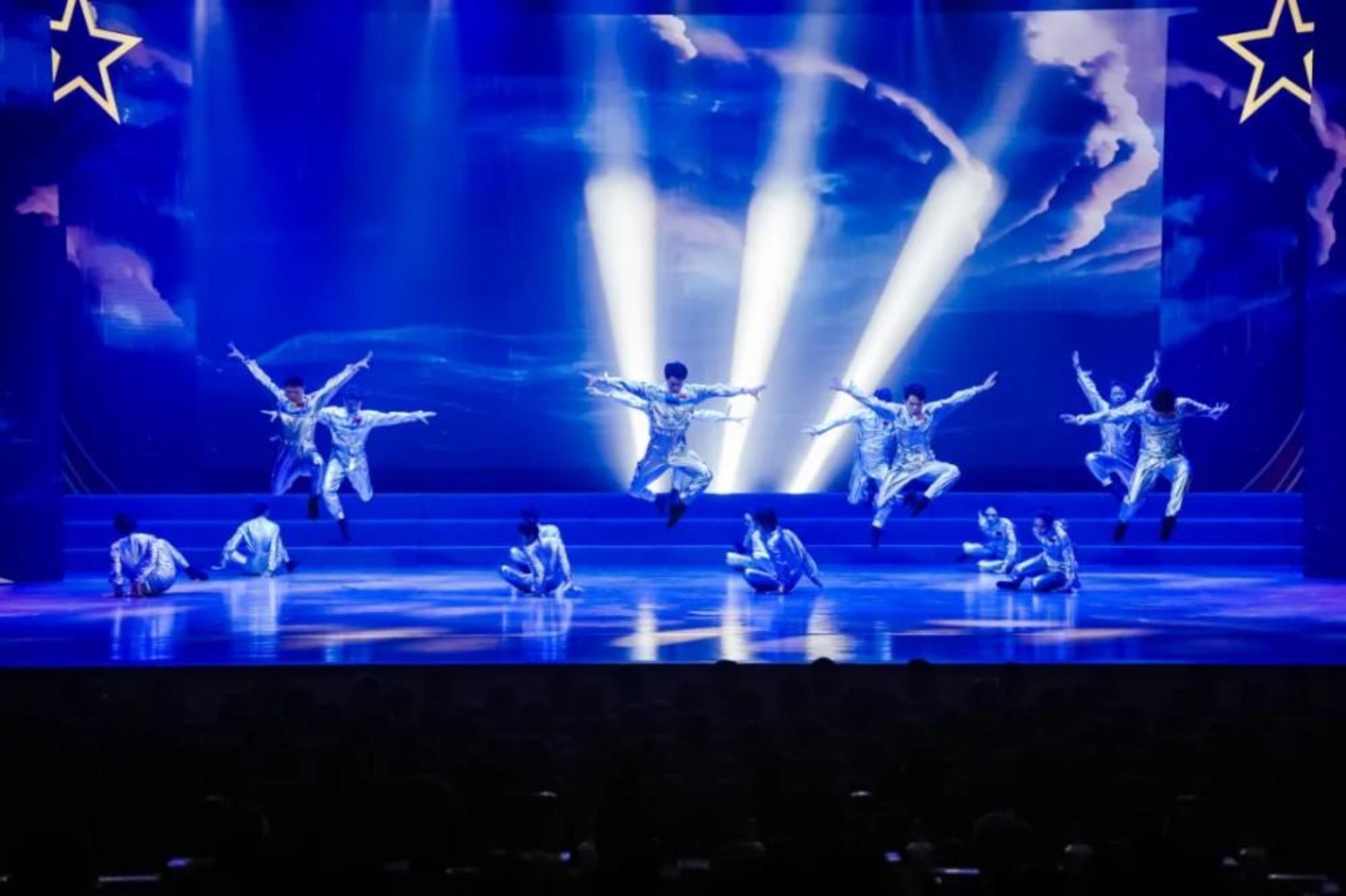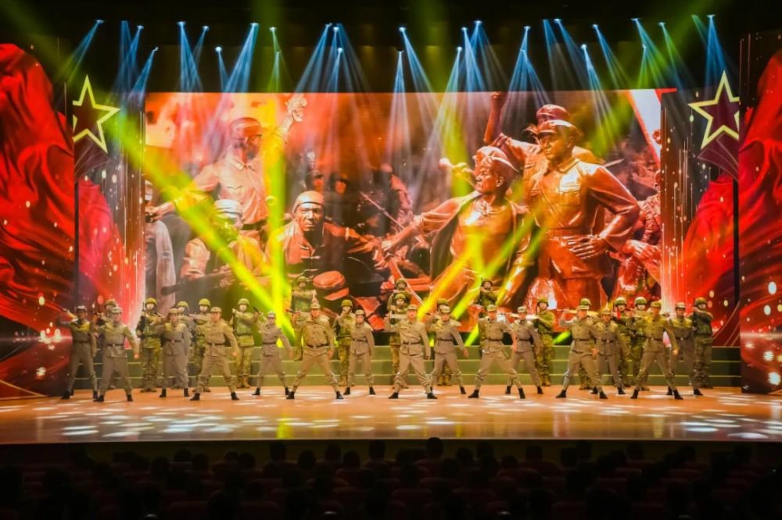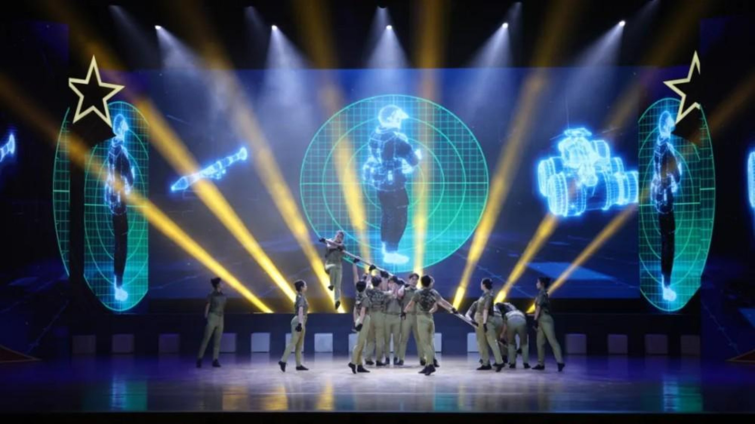 随后,舞蹈《中国军魂》震撼全场。演员们用整齐划一的舞姿,有力地呈现了刺刀拼杀等经典军事动作,将晚会再次推向高潮。