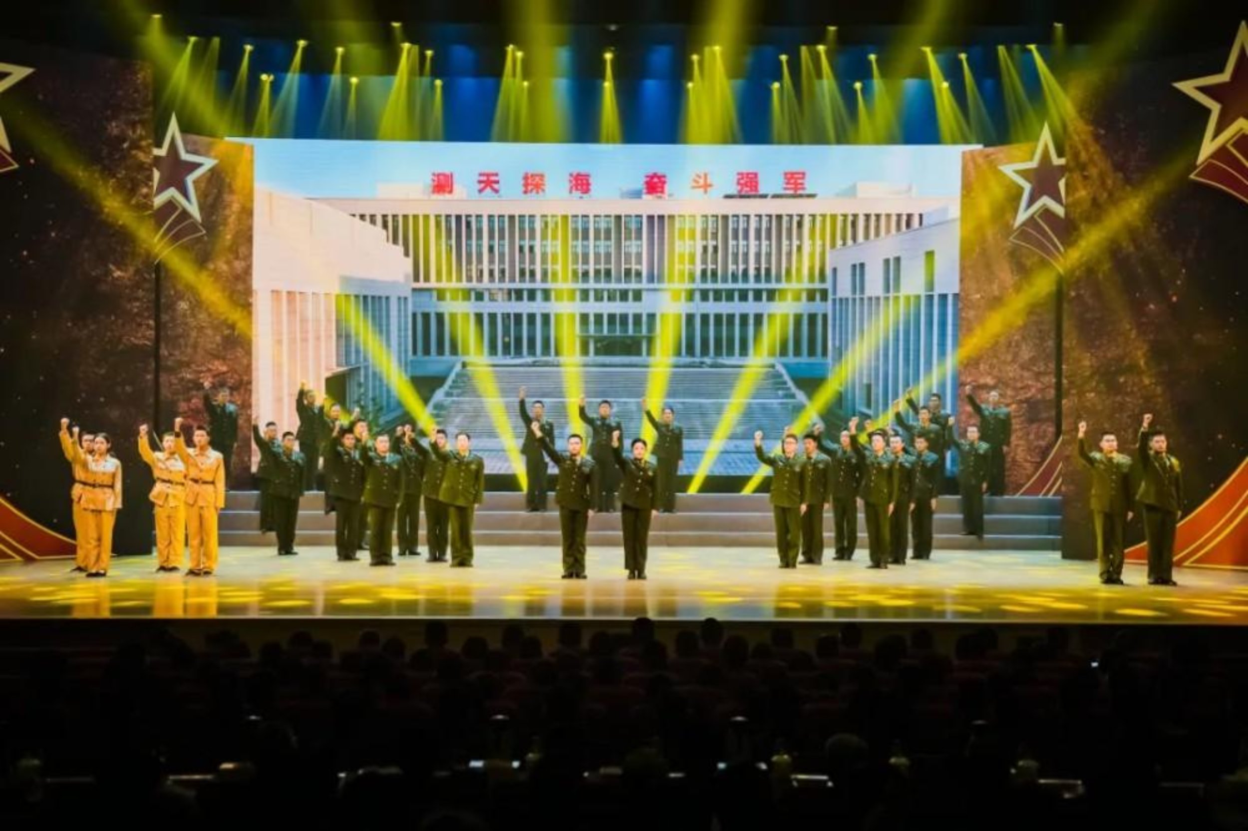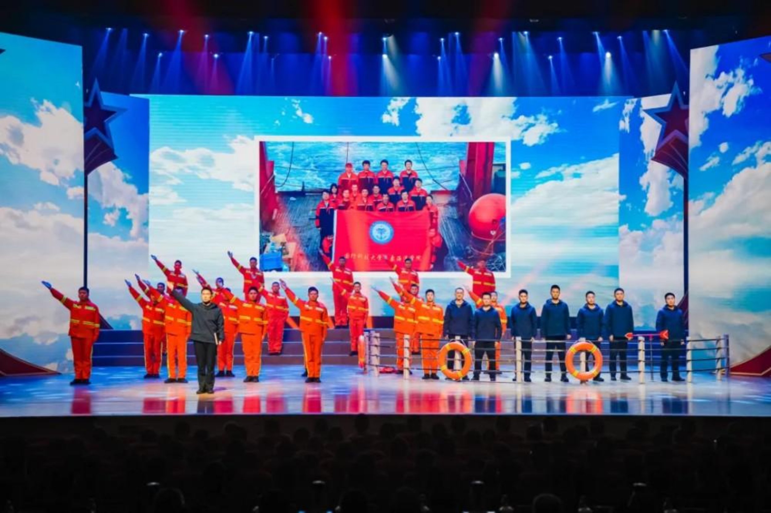 晚会以“我们的征途是星辰大海”为主题,生动展现了一代代海天人“携一支金笔走南闯北,展二尺玉帛呼风唤雨”,用青春和热血践行对祖国铮铮誓言的忠诚品格与热血担当。