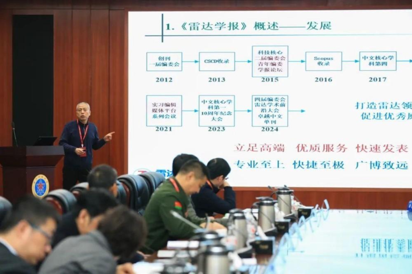 交流环节中,第十四届全国政协委员、中国科学院自然科学期刊编辑研究会秘书长刘筱敏研究馆员详细解读中国科学引文数据库(CSCD)的评选标准与流程,为期刊提升学术规范性与影响力提供指导;《雷达学报》编辑部贾守新主任从编委职能角度出发,探讨如何发挥编委在选题策划、稿件评审及学术传播中的关键作用;哈尔滨工程大学林云教授结合专刊组稿案例,分享如何通过精准选题策划与跨团队协作打造高质量学术专题;《信息对抗技术》主编曾芳玲教授围绕学术影响力提升、特色专栏建设等方面汇报了期刊近三年建设成果,聚焦推进期刊高质量发展、吸引优质稿源、扩大领域知名度、加强期刊文化建设等方面提出未来发展目标。