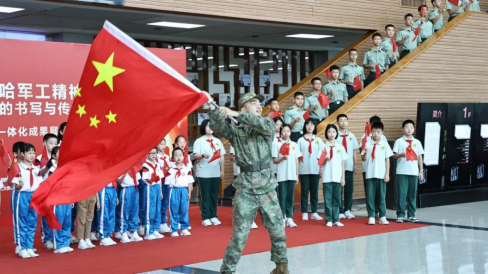 开幕式上,来自大学、中学、小学和幼儿园的学生代表合作演唱了《如愿》和《歌唱祖国》两首歌曲。用歌声表达对老一辈“哈军工”人的致敬和对伟大祖国的祝福。