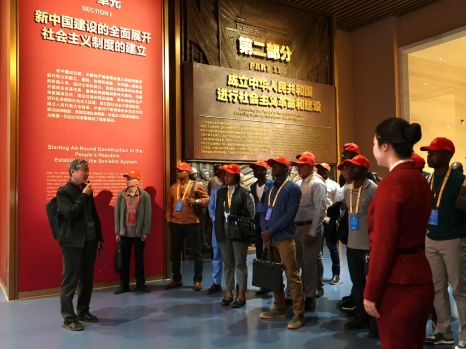 为了让非洲青年军官更好地了解中国的发展历程和中国共产党的奋斗史,代表团一行参观了中国共产党党史展览馆。通过珍贵的历史文物、详实的文献资料、逼真的场景复原以及多媒体展示,非洲军官们全面回顾了中国共产党从成立到发展壮大的光辉历程。
