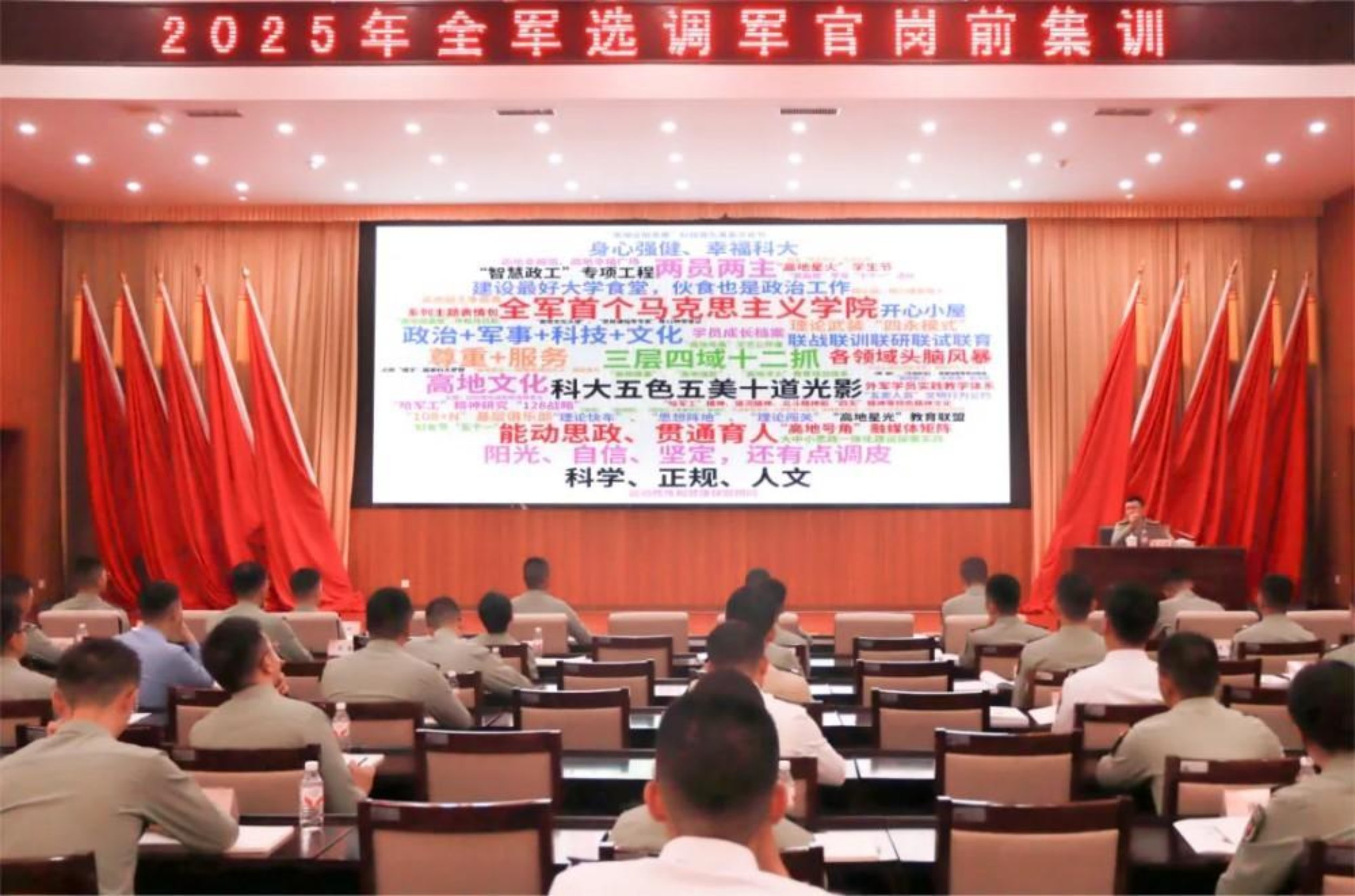 近日,为期9天的2025年度选调军官岗前集训在国防科大长沙校区三号院圆满落幕。本次集训旨在助力选调军官快速熟悉掌握军事高等教育规律和人才培养规律,熟悉掌握组训施教方法和院校基层管理特点,全面做好任职准备。学校政委陈国强出席选调军官集体谈心会,以如何立足新岗位干事创业为主题开展谈心交流,勉励选调军官认清职责使命,积极投身强军强校建设事业。