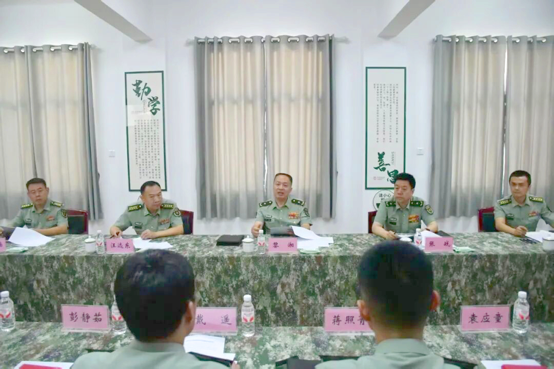 校长黎湘率机关工作组赴长沙校区三号院检查2025年秋季学期开学情况和2025级新学员迎新、新训准备工作情况, 听取军政基础教育学院新训准备工作情况汇报, 黎湘随堂听查2024级军人本科学员《大学语文》、新训干部骨干集训《热射病防治》课程