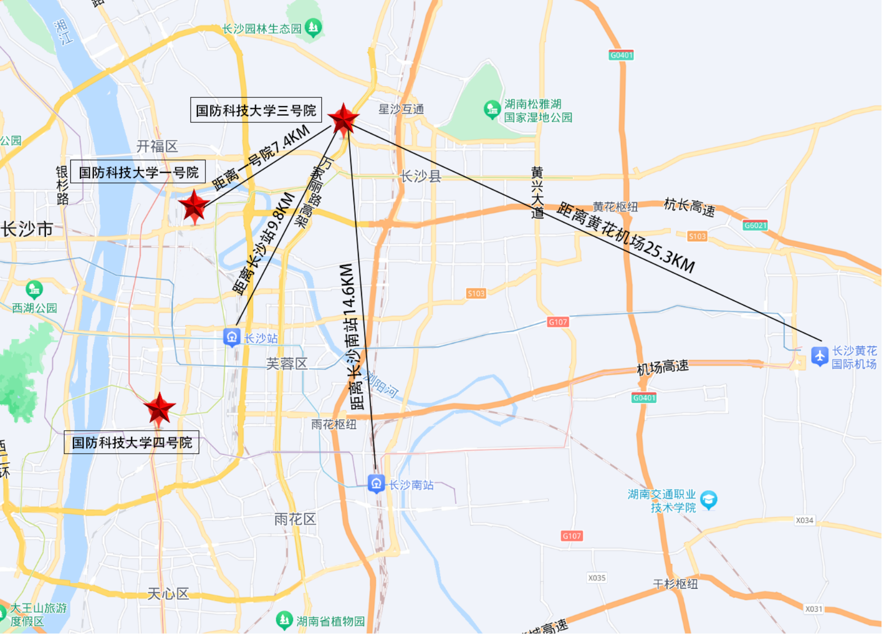 长沙校区在长沙南站、长沙站、长沙黄花国际机场,南京校区在南京南站、南京站、南京禄口机场分别设置接站点。