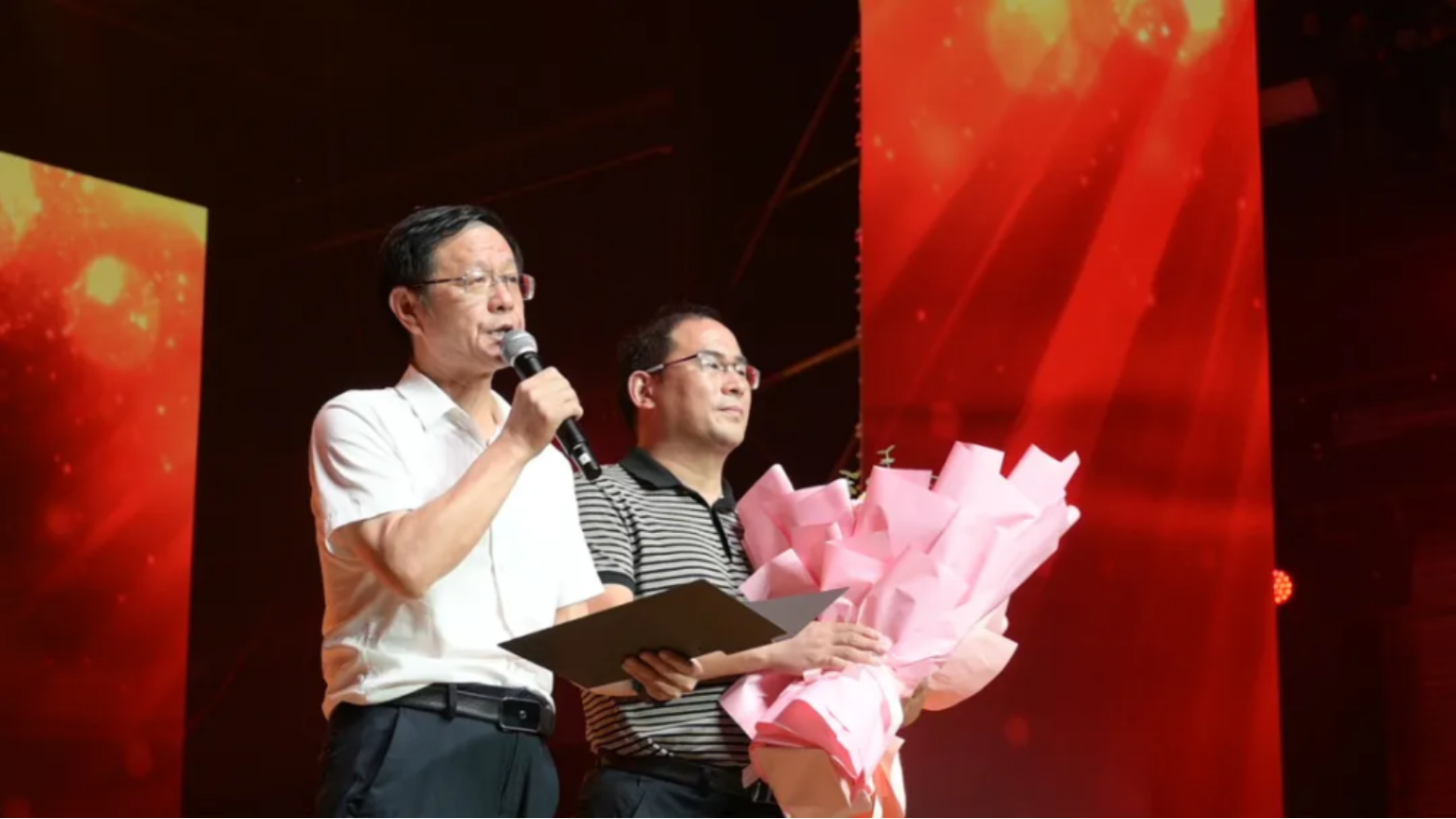 师长寄语的特别环节中,把安徽潜山野寨中学的党总支书记和老师们请到了现场,共同见证统帅关怀下的青年学子两年的成长。