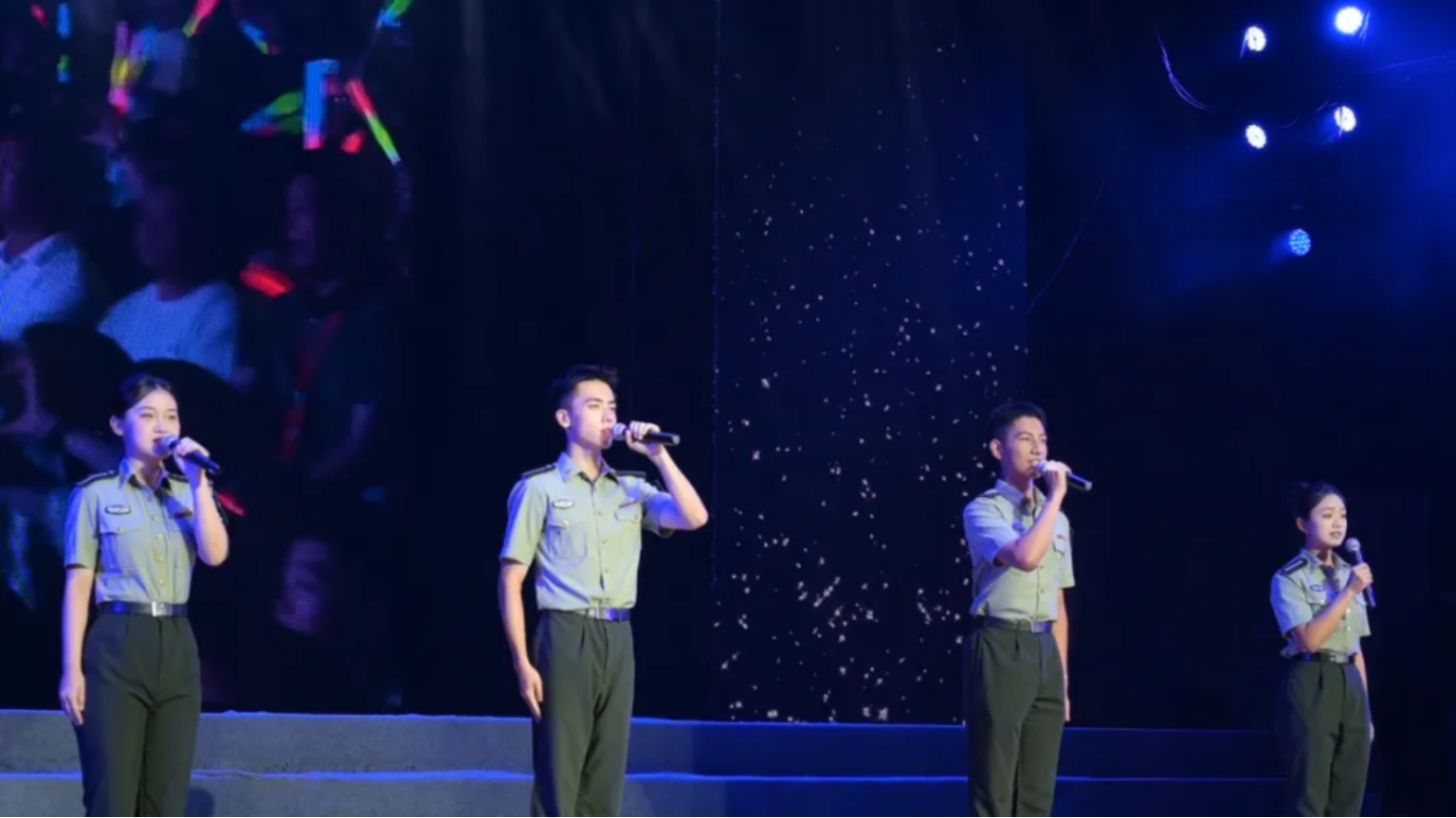 合唱《青春奔赴》响起,大屏流转两年峥嵘:战术场的泥泞未干,实验室的灯火犹明,领奖台的泪光闪烁……所有磨砺,此刻都熔铸成奔赴战位的底气。