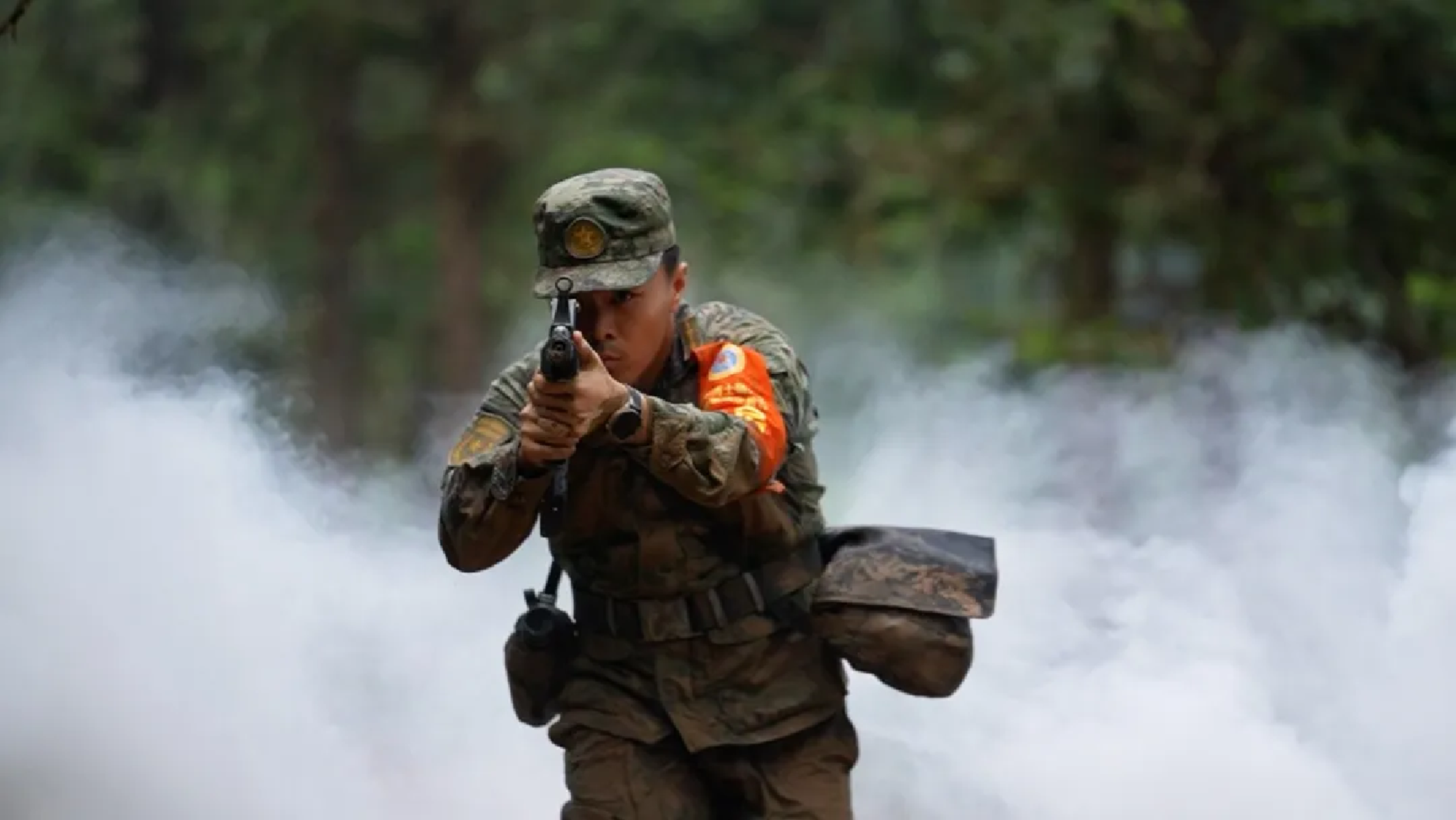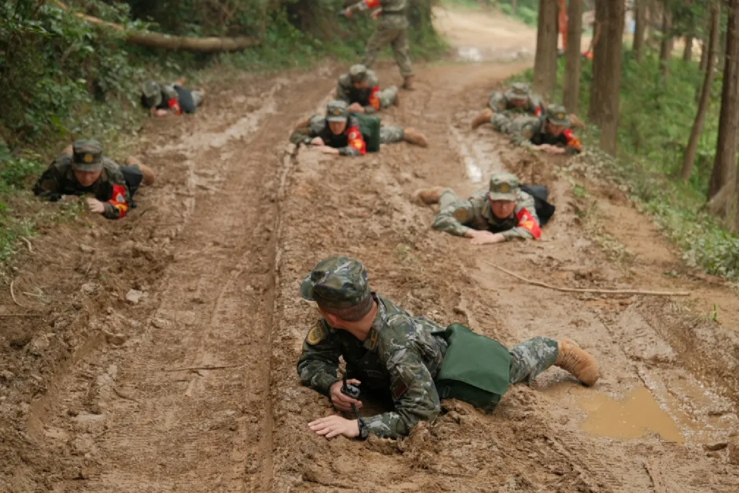 “火力组加强掩护,第一组快速通过……”红军小道上,红蓝对抗激战正酣。“蓝军班”班长张书强通过无人机导调,对“红军班”展开猛烈攻击,将红军成功阻击。此时,导演组却宣布“蓝军”全体阵亡。