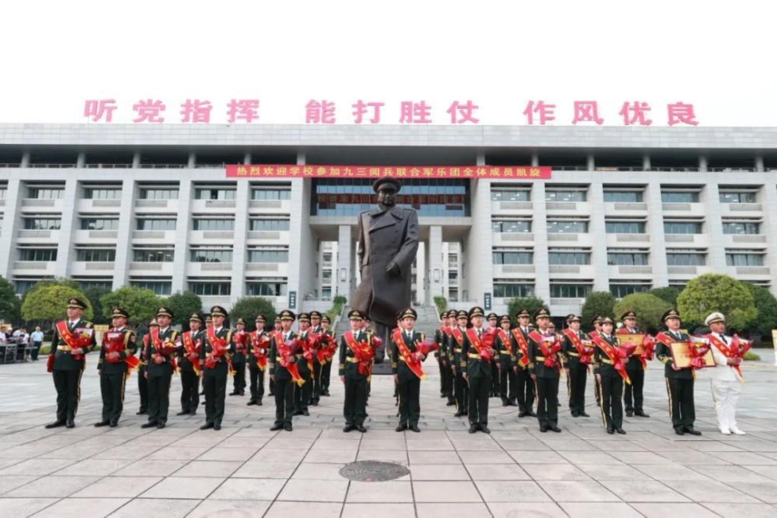 凯歌伴军乐齐鸣 繁英共丹霞一色