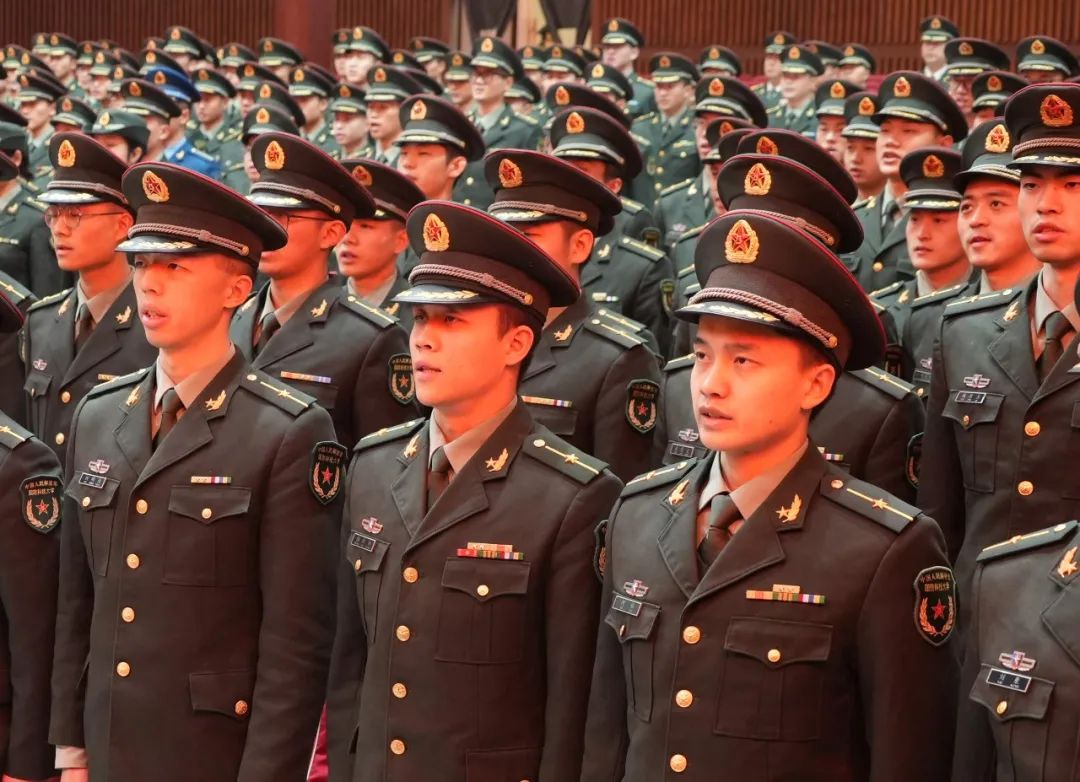 在雄壮的军乐声中,全体新授衔学员重温入伍誓词,他们举起右拳,庄严宣誓,眼神中充满了坚毅与自豪,胸膛中怀揣着使命与担当,铮铮誓言响彻整个会场。