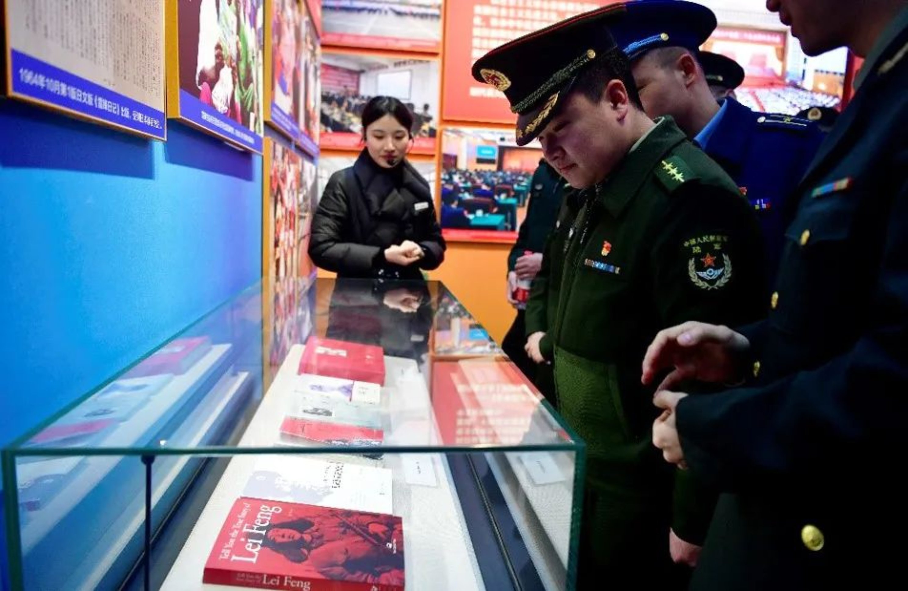 电子对抗学院某学员大队组织学员赴雷锋文化展览馆参观见学,馆内陈列的雷锋铜制半身像、各类书籍、证书、老照片等物件,展现了雷锋短暂而不平凡的一生。在讲解员指引介绍下,参展学员驻足凝视,纷纷表示要向雷锋同志学习,争做新时代雷锋传人。