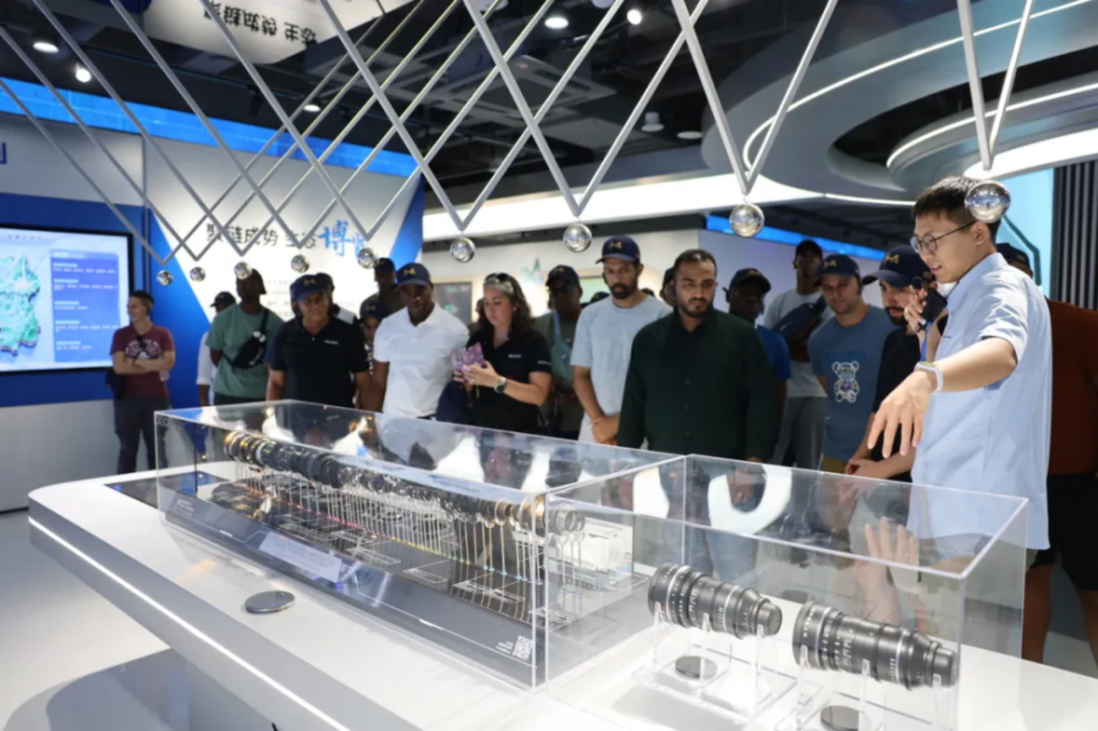走进展厅,充满现代感与科技感的空间陈列,瞬间吸引了外军学员们的目光,大家频频驻足,用镜头捕捉园区独特的科技魅力。跟随工作人员脚步,外军学员深入了解园区作为中国视频文创产业“排头兵”的发展历程、产业布局和创新成果。从前沿的数字媒体技术,到极具创意的视频内容制作,每一个展示环节都让外军学员惊叹不已。