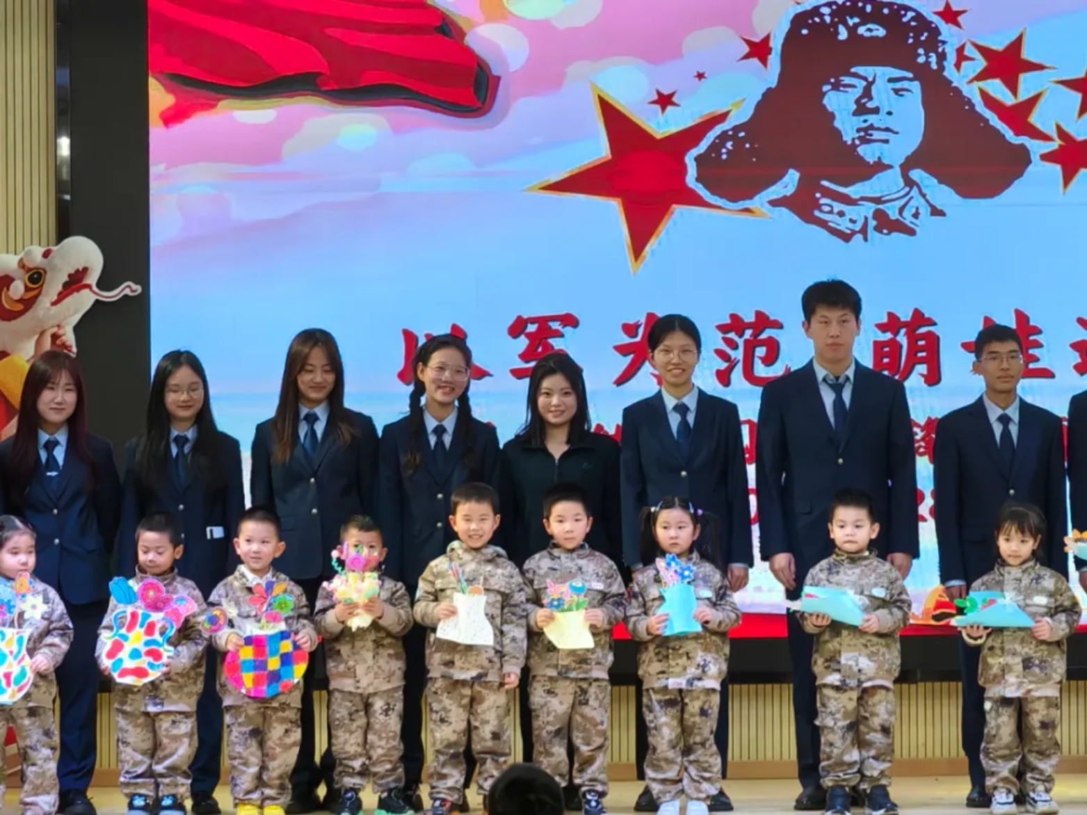 外国语学院某学员大队以“续写雷锋故事,争当雷锋传人”为主题,组织各学员队分赴多地开展形式多样的学雷锋纪念活动。学员们走进社区和学校,通过手工教学、红歌教唱、故事分享等丰富多彩的互动活动,与孩子们亲切交流,为他们送去温暖与关怀。