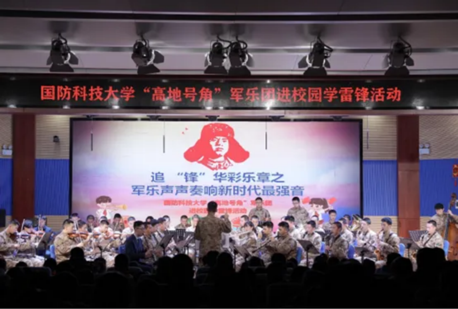 “高地号角”军乐团前往某小学开展雷锋日慰问演出。军乐团精心准备了《学习雷锋好榜样》、《少年先锋队队歌》、《中国人民解放军军歌》、《歌唱祖国》等一系列经典曲目。一首首乐曲被完美演绎,台下孩子们的掌声热烈。