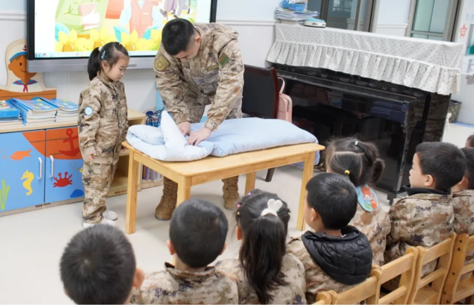 教练勤务营赴学校幼儿园进行学雷锋主题活动。连长陈世健“学习雷锋好榜样 争当红色小传人”微课引得在场小朋友们阵阵掌声,幼儿园师生共同观摩队列训练、匕首操、叠被子等科目,女兵青春舞蹈《一起出发》震撼全场。连队官兵与孩子们在小游戏中传递快乐,将军人风采、雷锋形象,烙印在记忆之中,激励他们好好学习,天天向上,当好红色小传人,走好人生每一步。