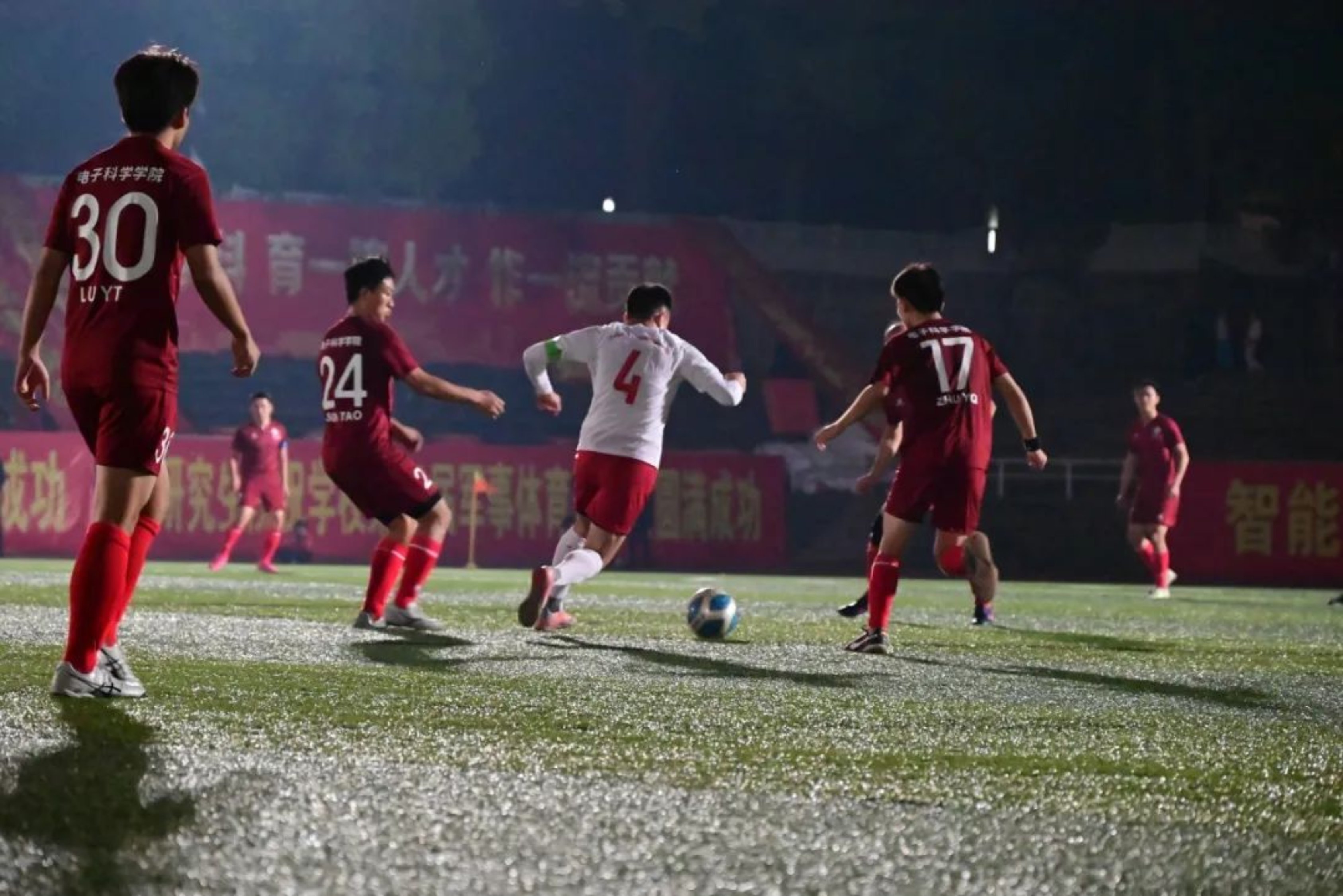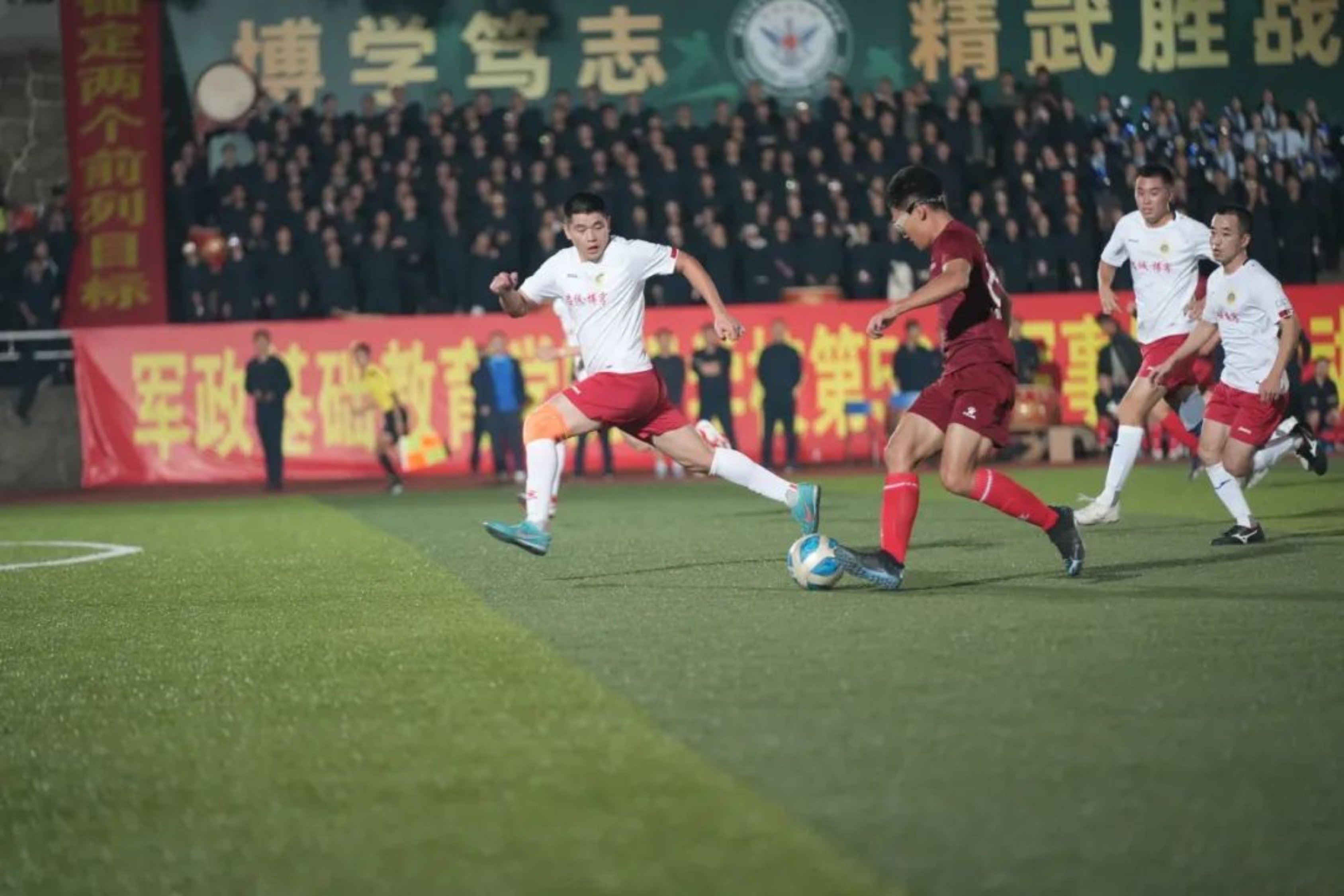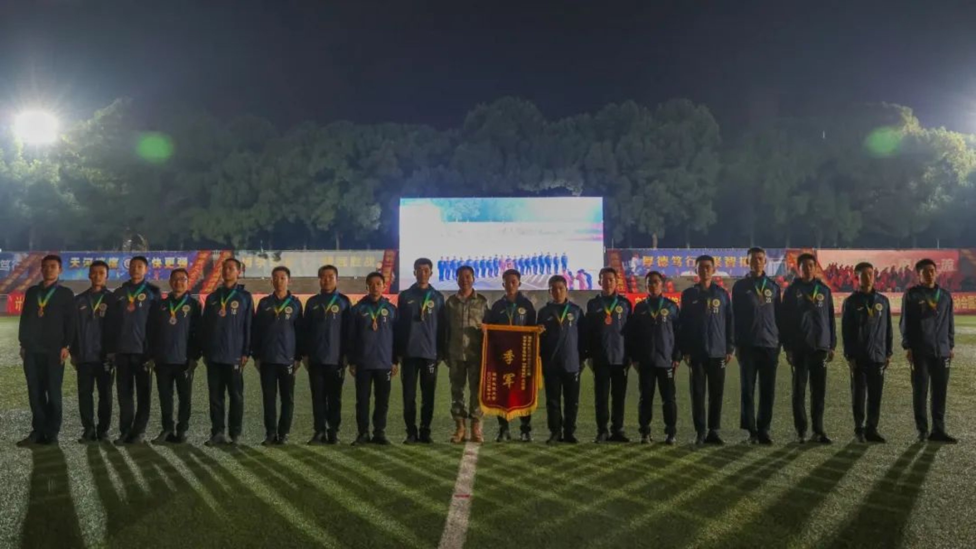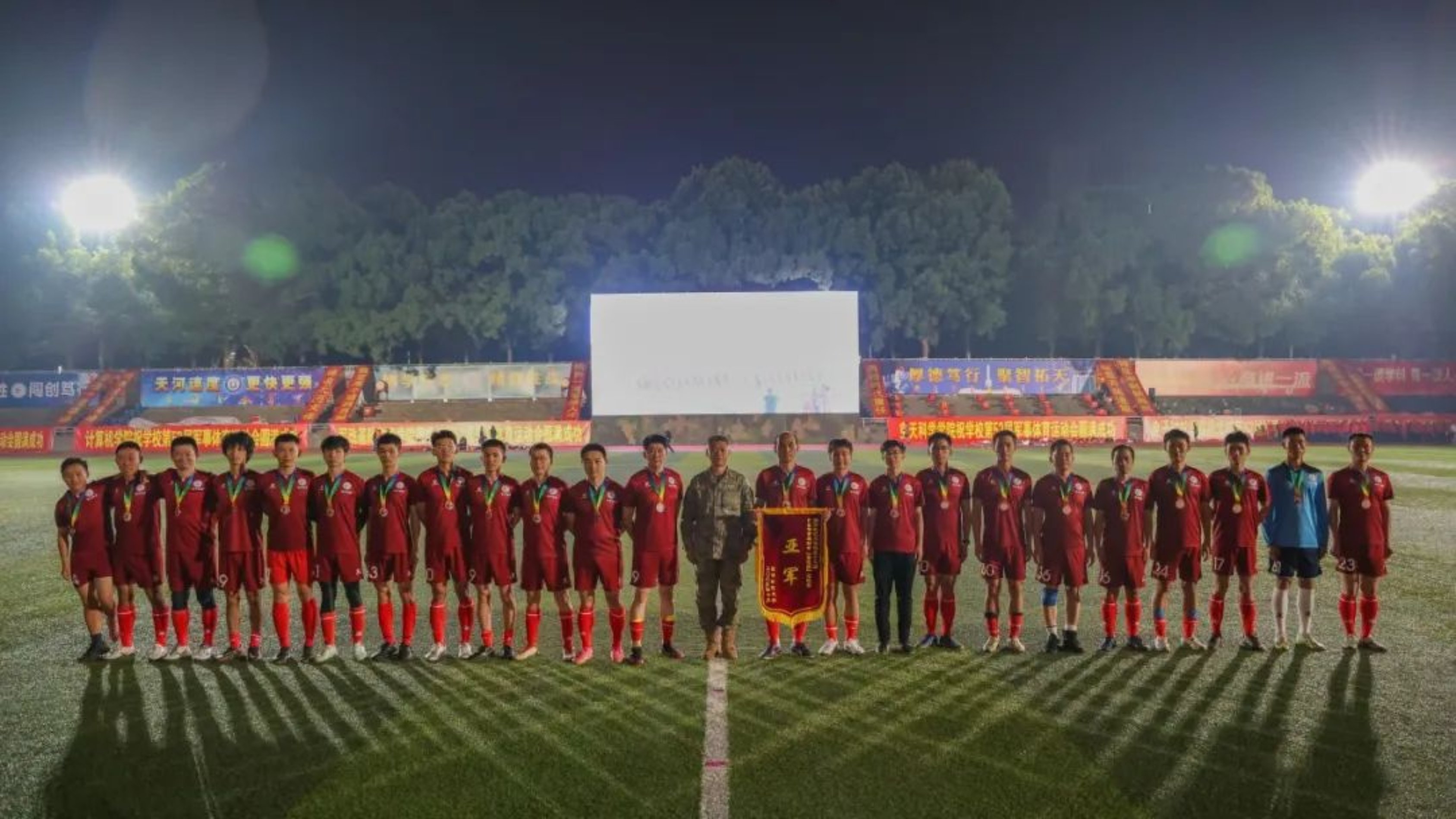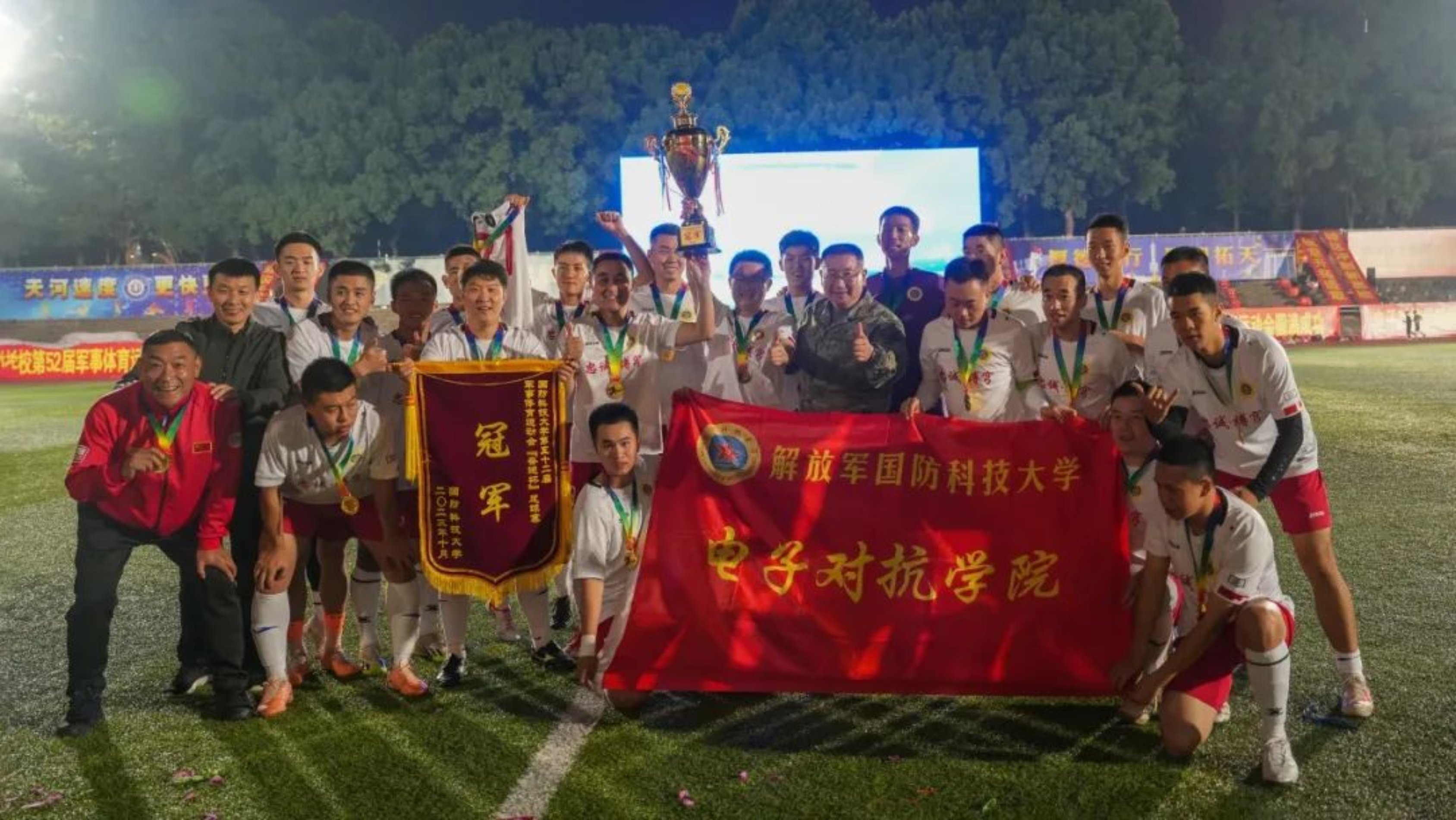 10月13日,国防科大长沙校区一号院的田径场上,白天校运会的火热气息兴味正浓,晚上“奋进杯”足球比赛决赛的战火又使团结拼搏的热烈氛围再起高潮。
