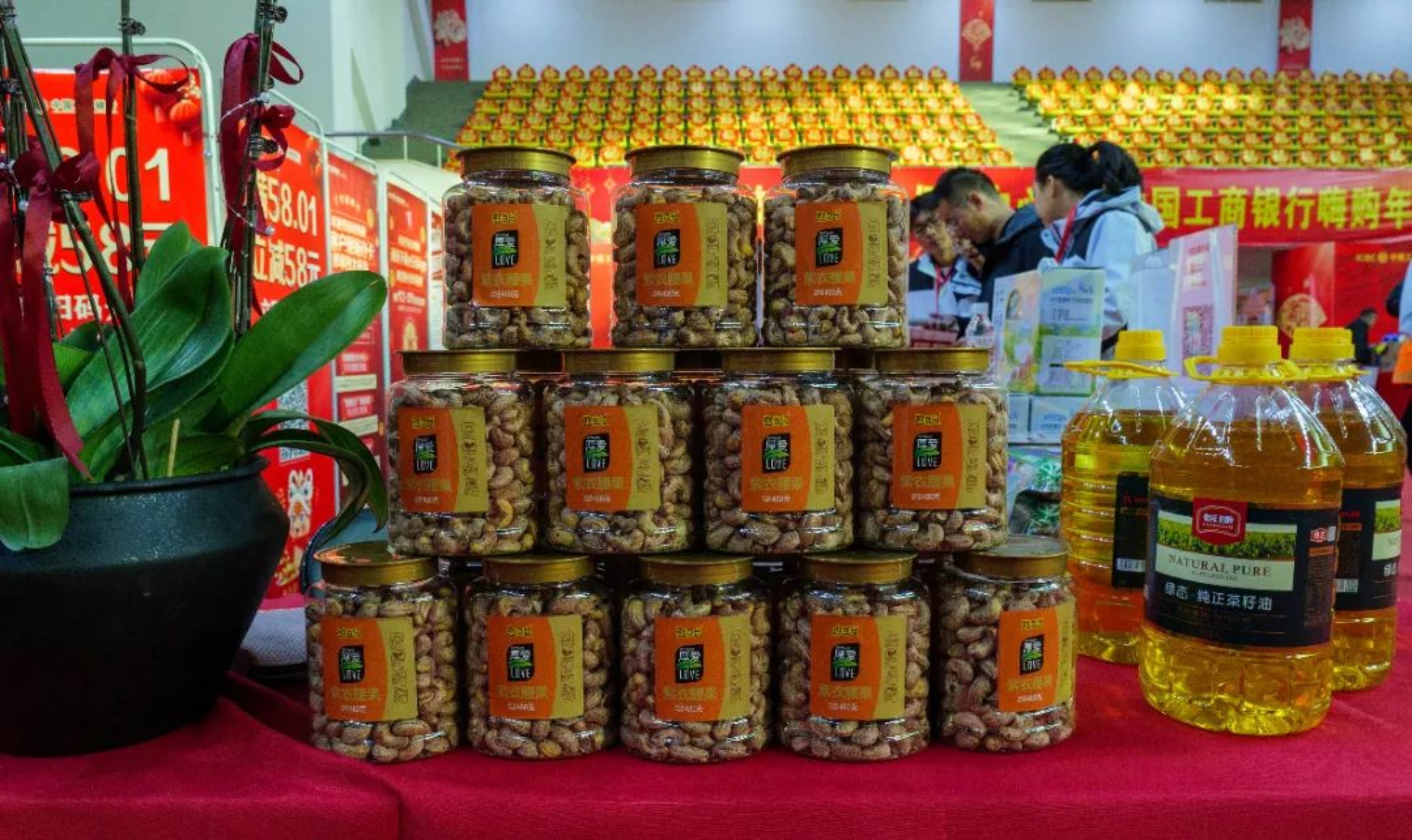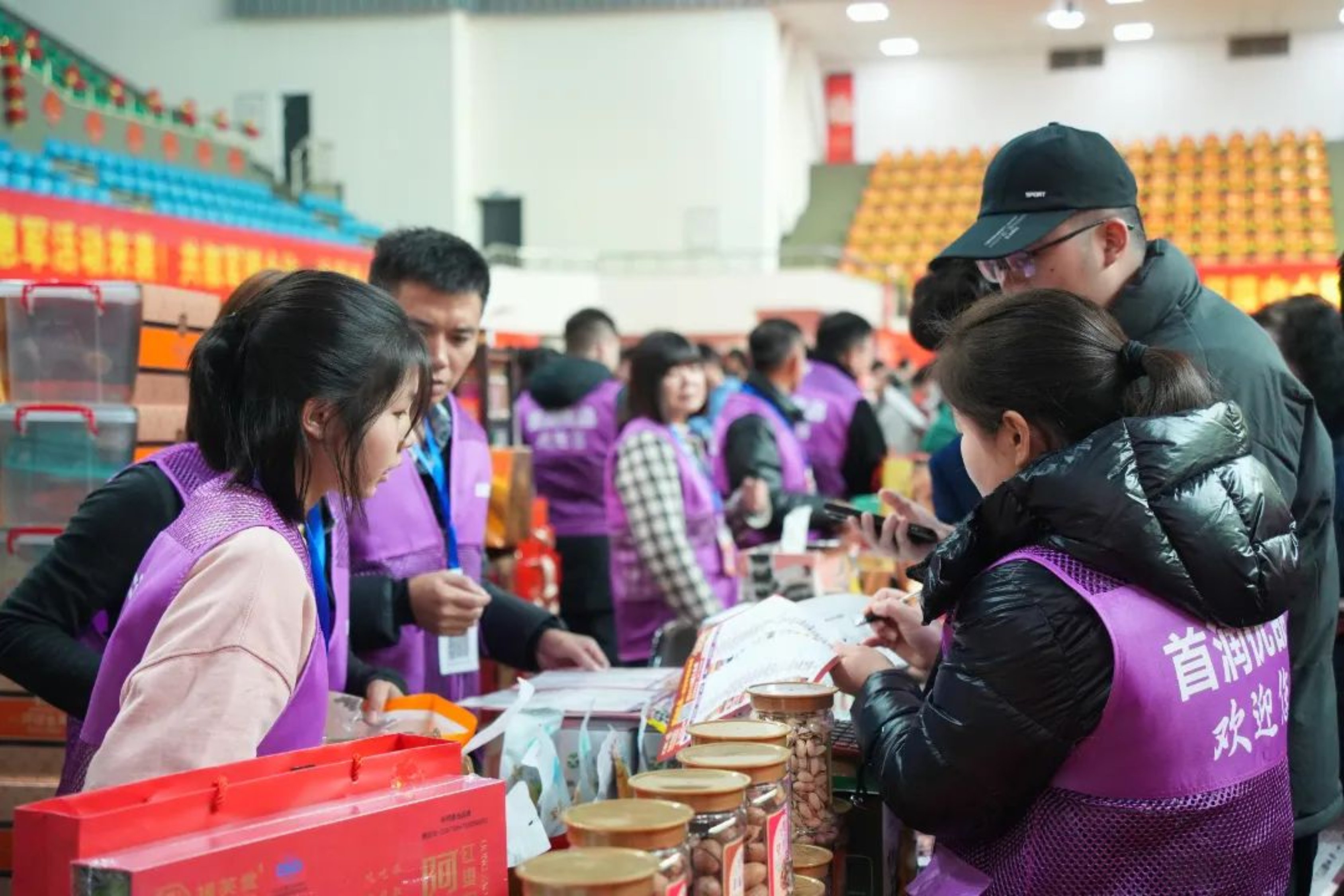 走进年货节现场,喜庆的氛围扑面而来,熙熙攘攘的人群、装饰喜庆的摊位、琳琅满目的年货,处处洋溢着浓浓的年味和“烟火气”。