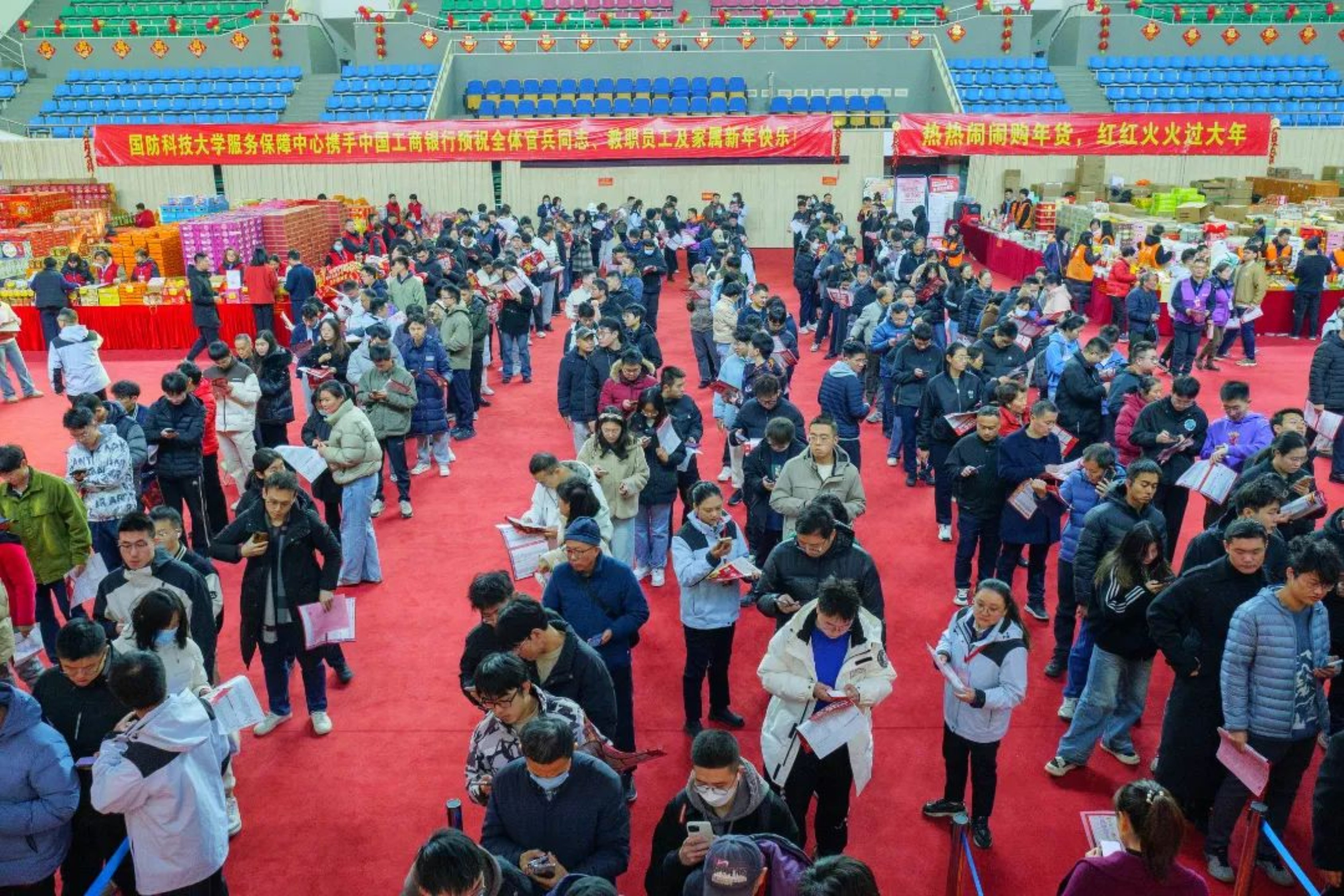 本届嗨购年货节由国防科大服务保障中心举办,以“礼遇新春”为主题,展出各地名优特产,满258元减168元超大力度的优惠活动吸引了众多科大人驻足选购。