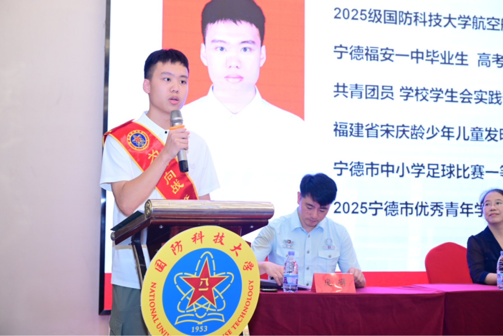 “从今天起,你们不仅是青年学子,更是肩负强军使命的准军人。”活动现场,与会领导为新生一一佩戴绶带。一枚枚红色绶带,不仅是一份荣誉,更是一份沉甸甸的责任。新生代表、来自宁德福安一中的陈昊珉难掩激动之情:“从军是我儿时的梦想。今天,梦想照进现实。我将以科技报国为志,以强军兴国为责,努力成长为新时代有理想、有本领、有担当的革命军人。”