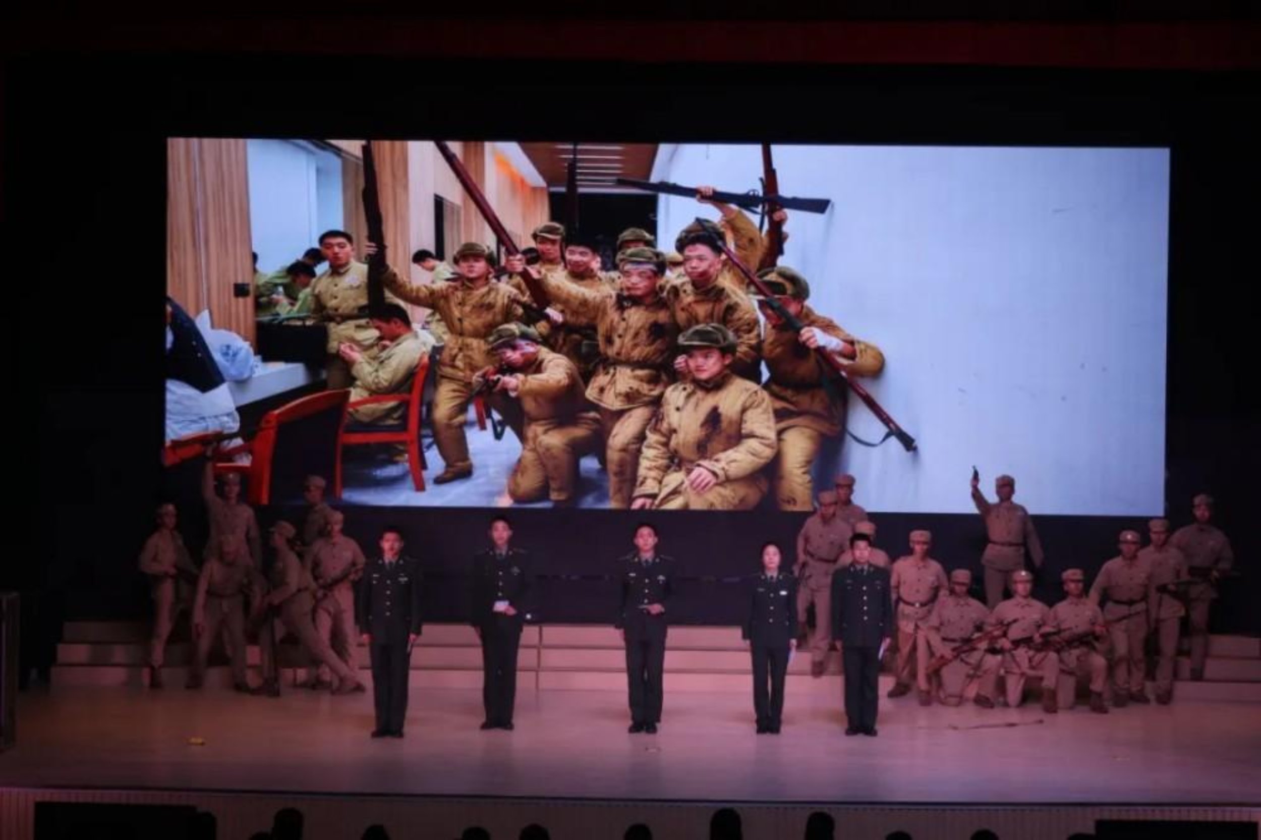 近日,在军政基础教育学院某学员大队的年度表彰上,一堂特殊的思政课演出吸引了所有人的目光。台上的演员们都有着共同的身份——他们均是来自该大队某学员队的学员、学校《丰碑》文艺思政课的参演者。