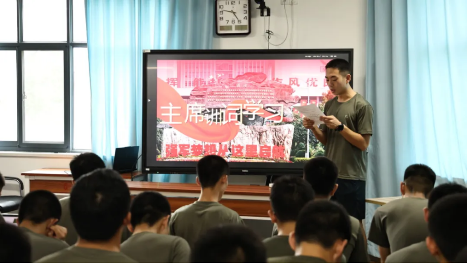 分级分类更能精准有效,军政基础教育学院党委中心组对照训词要求,立足岗位职责,就潜心学科建设、夯实军政基础、弘扬高地文化等进行深入交流,各学员队利用新闻前小演讲、集中政治教育时间开展形式多样的讨论活动。外国语学院组织师生通过分层学习讨论、立足岗位交流研讨感悟使命责任、激发奋进动力。