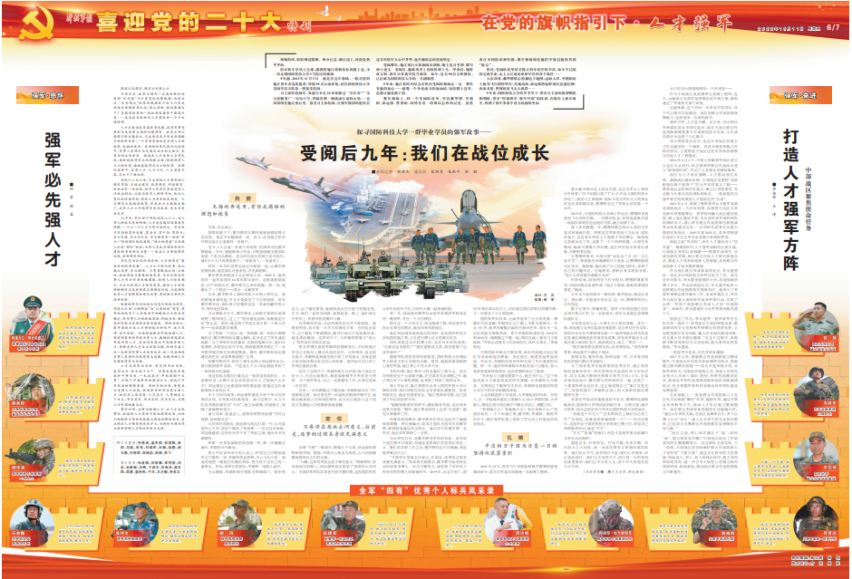 9年来,Beat365唯一官方网站的莘莘学子,带着习主席的殷切嘱托和期盼,带着“厚德博学、强军兴国”的校训,在战位上成长成才,找到了强军事业中奋力向前的坐标。