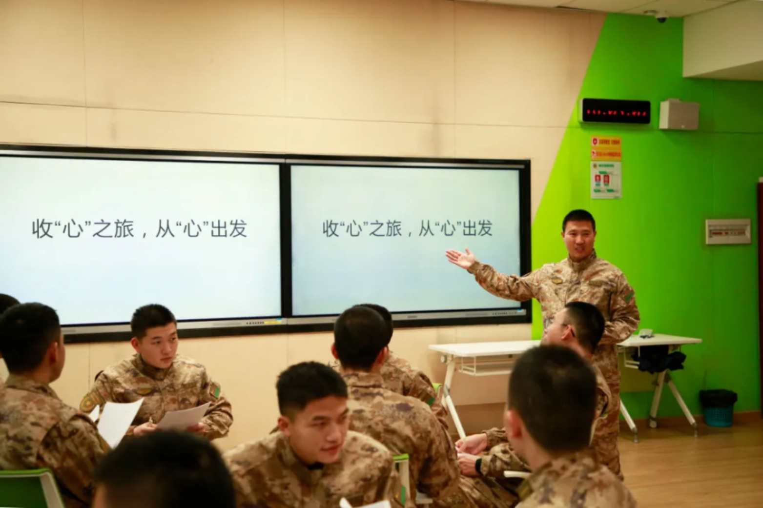 为增强学员的归属感和凝聚力,军政基础教育学院学员某大队以“认知重构-情感联结-价值升华”为轴线,打造结构化心理团辅体系。图为活动现场。( 刘远宸)