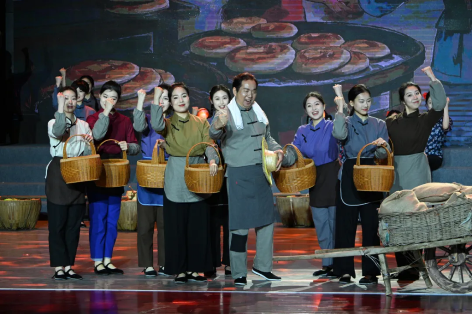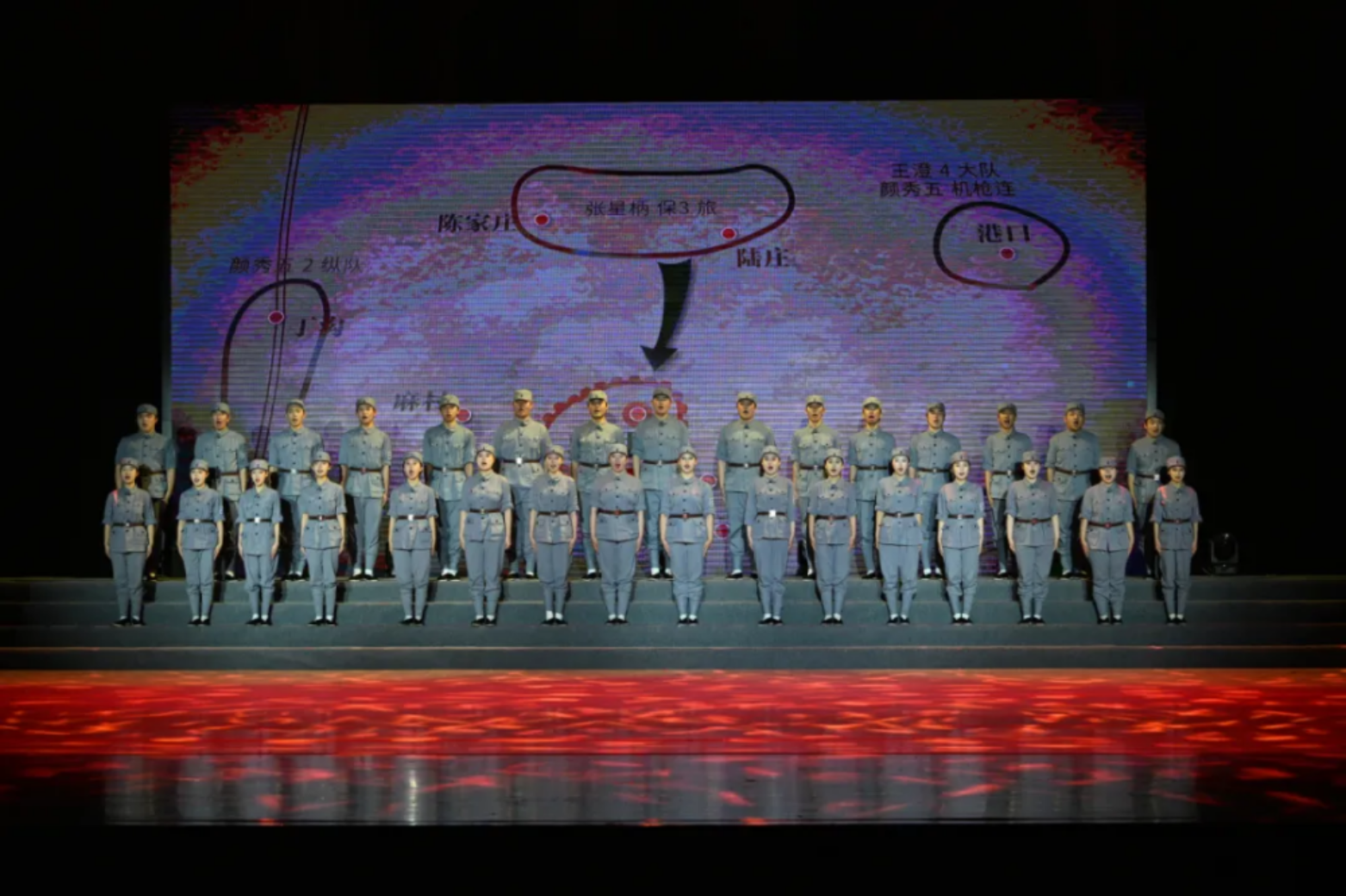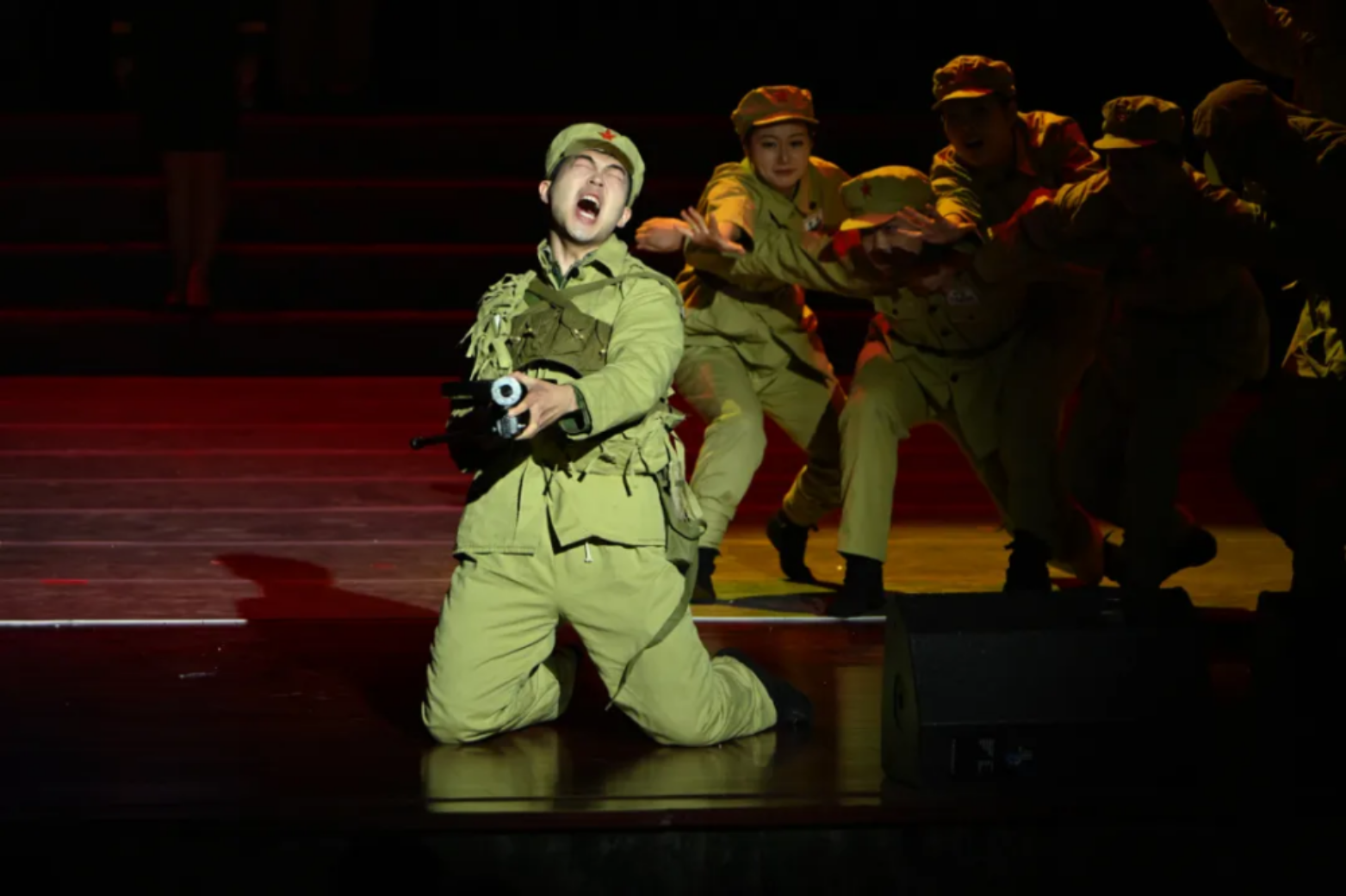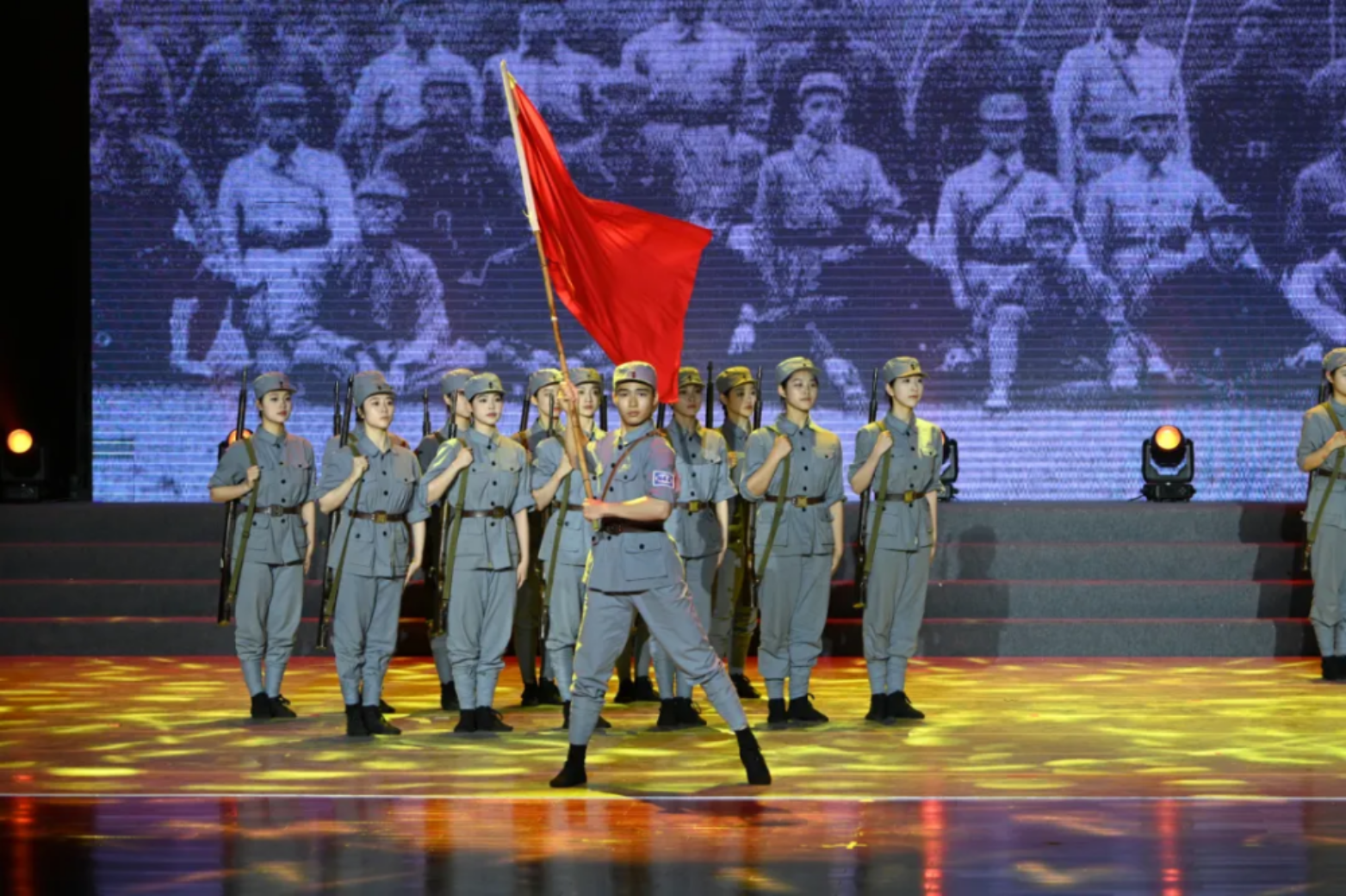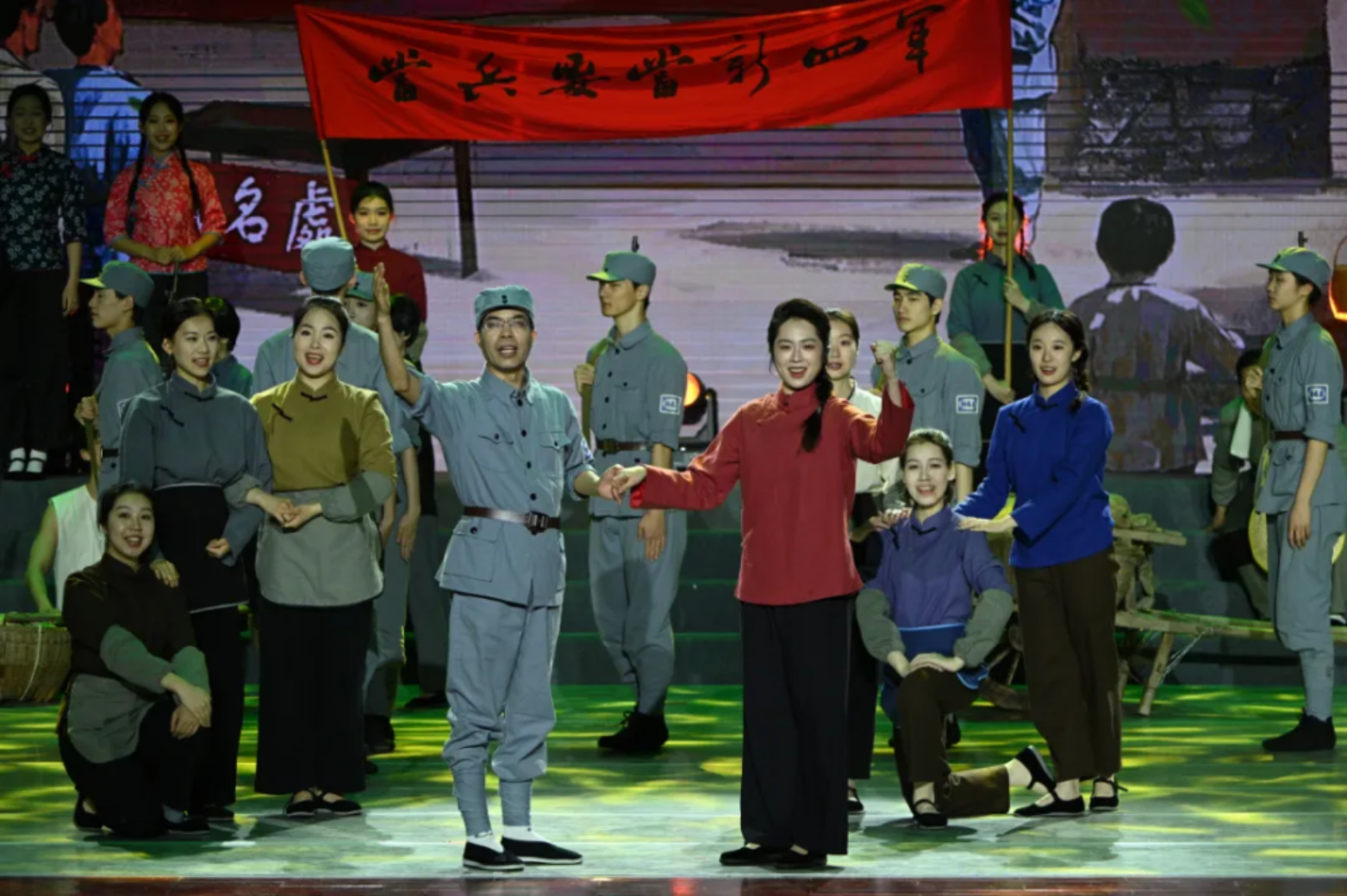 一面面红旗在演员们手中传递