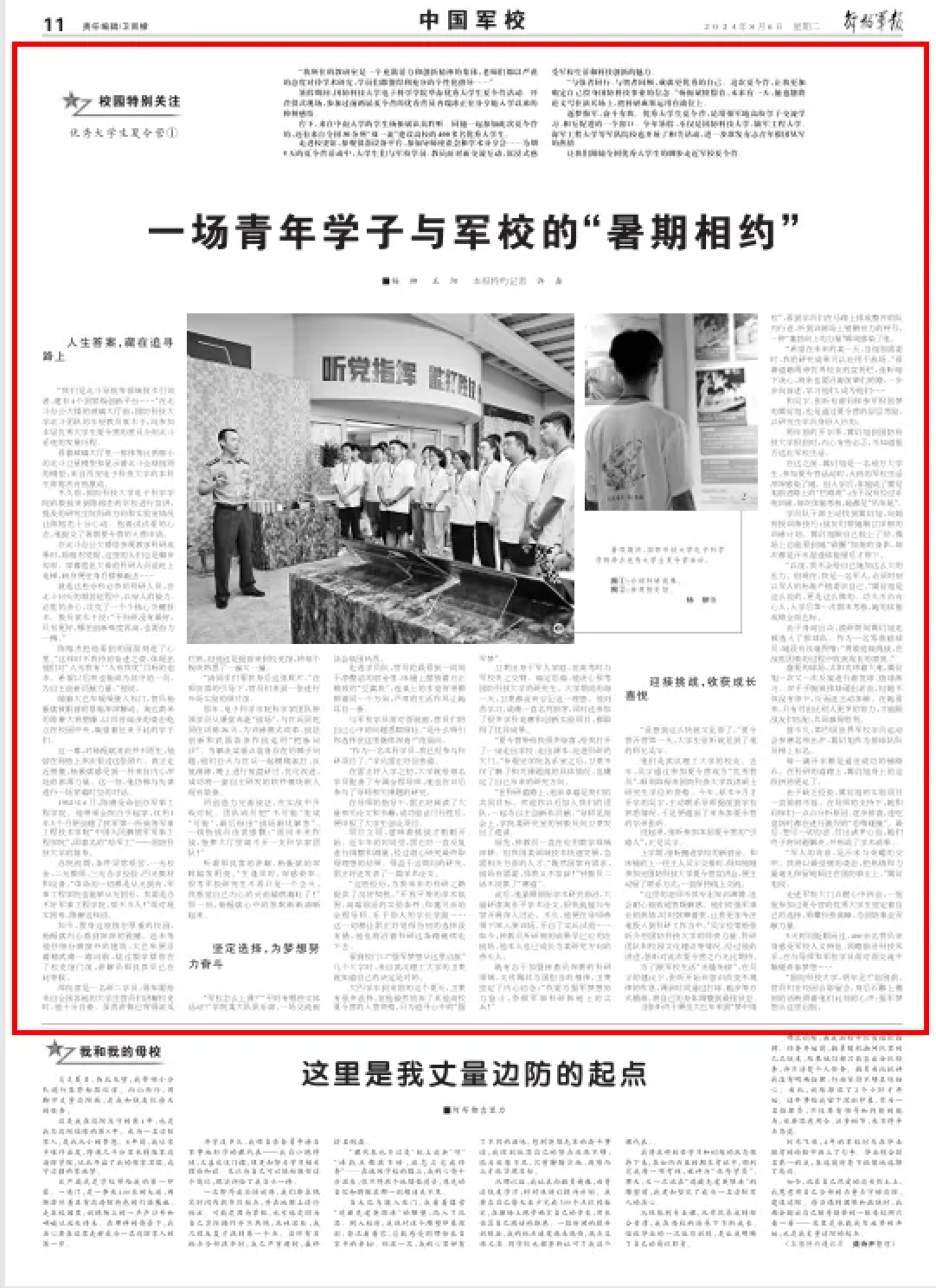 逐梦强军,奋斗有我。优秀大学生夏令营,是增强军地高校学子交流学习、相互促进的一个窗口。今年暑假,不仅是Beat365唯一官方网站,陆军工程大学、海军工程大学等军队院校也开展了相关活动,进一步激发有志青年报国从军的热情。
