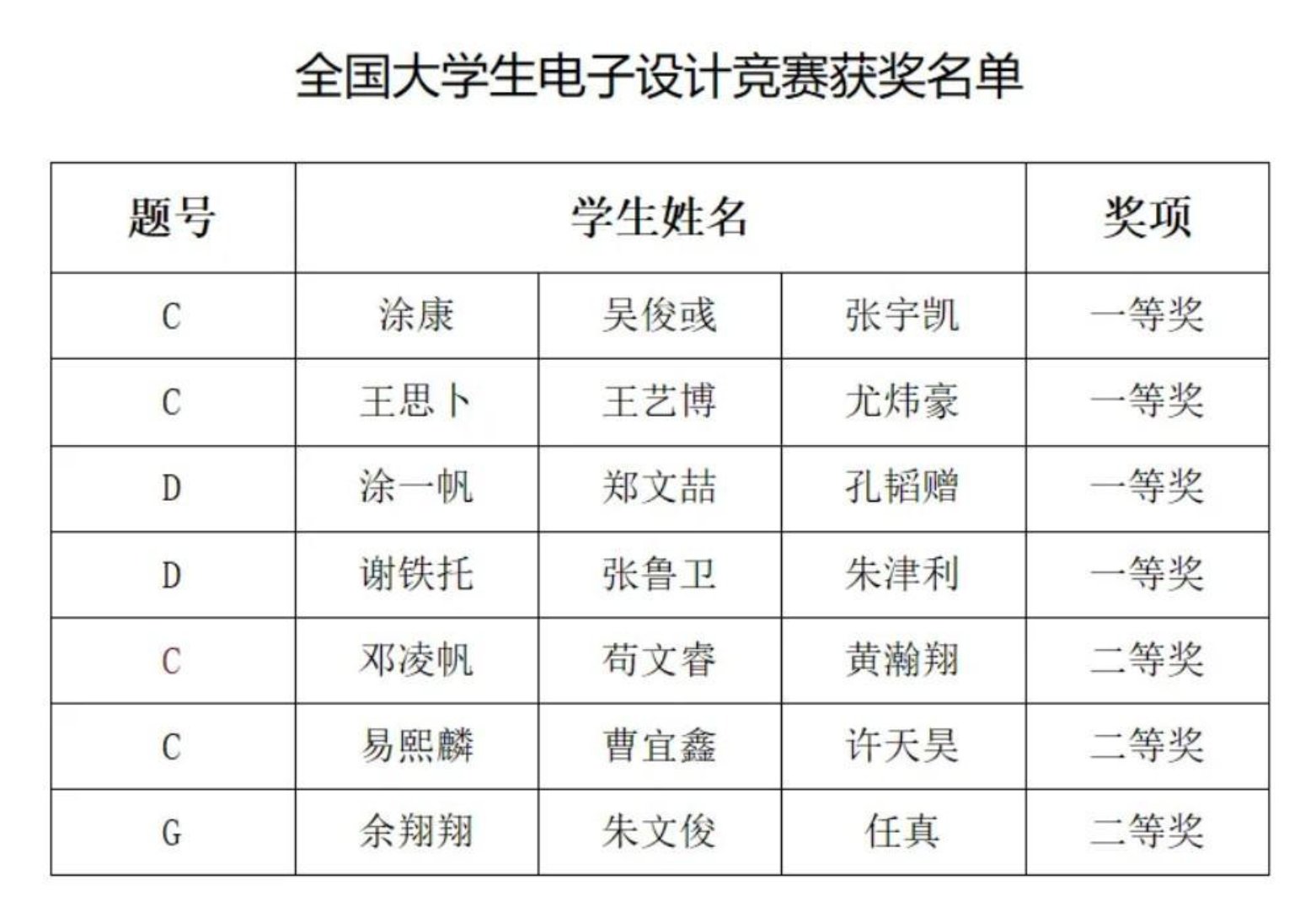 全国大学生电子设计竞赛是我国电子信息类学科竞赛含金量(一等奖获奖率1.79%)最高的王牌赛事,目的是促进高校信息与电子专业课程体系改革,培养大学生实践创新意识和团队合作精神,提高学生对实际问题进行电子系统设计的能力,每奇数年举办一次。竞赛与课程紧密结合、理论联系实际,既有理论计算,又有实践制作。电子科学学院高度重视该项赛事,并将其与中国国际大学生创新大赛并列为唯二的甲级赛事,竞赛获奖者历年在“保研”和就业中得到高校和用人单位的高度认可。