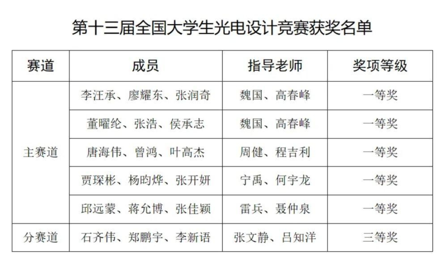 第十三届全国大学生光电设计竞赛