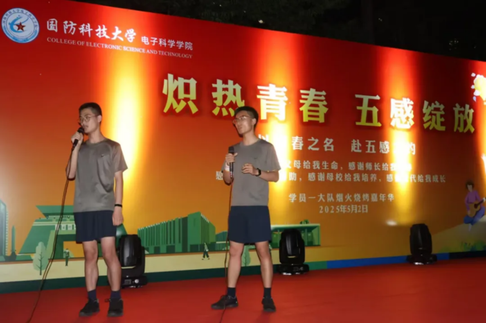 电子科学学院精心筹划举办了“以青春之名,赴五感之约”主题晚会,晚会现场气氛热烈,歌曲演唱、武术表演、说唱等节目轮番登场、精彩纷呈,充分展现了军校学员多才多艺、昂扬向上的精神风貌。活动尾声,全体学员共同分享了象征高塔逐梦,团结奋进的集体蛋糕,在甜蜜温馨的氛围中感悟集体力量。