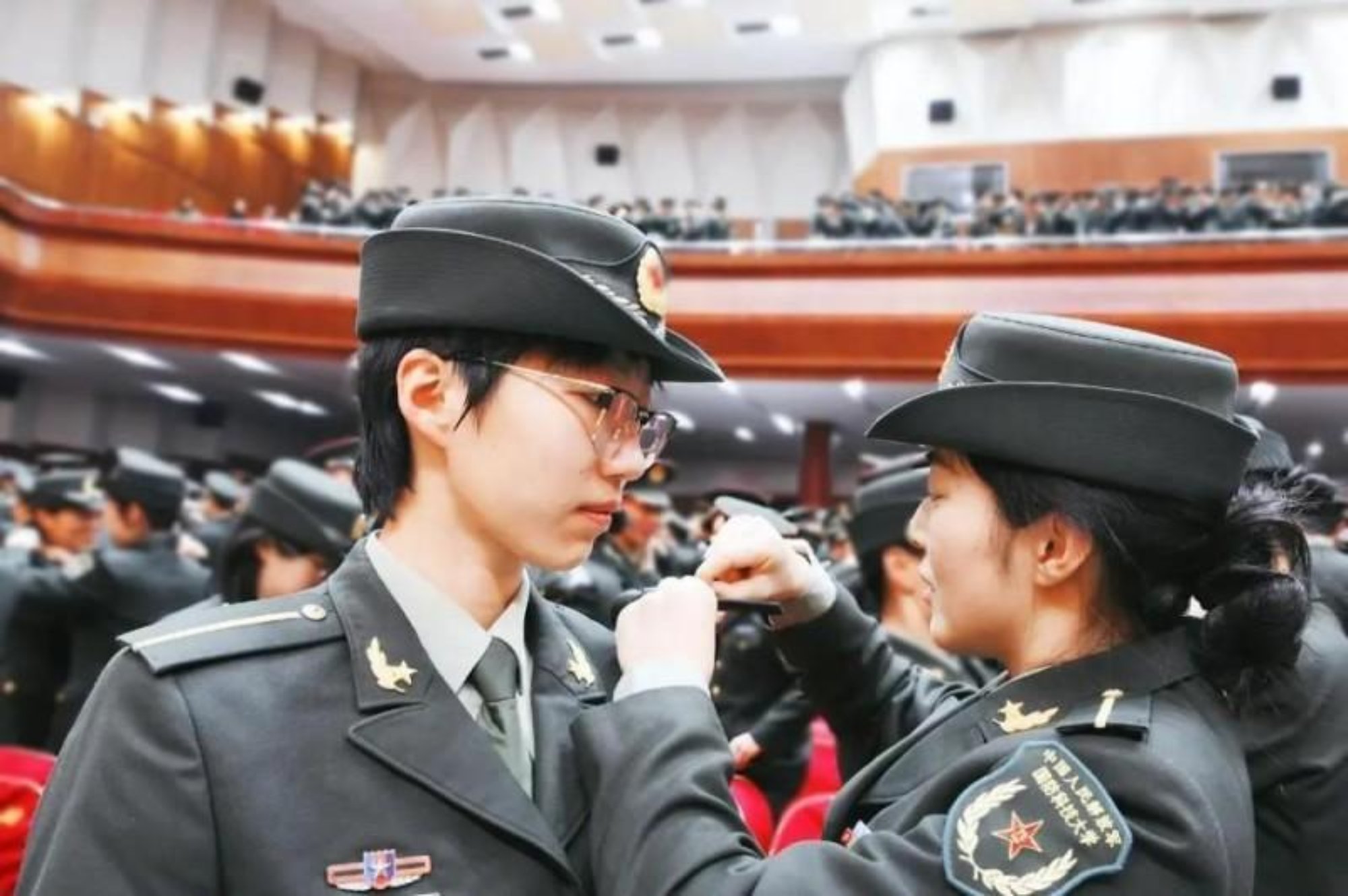 近日,研究生院在长沙校区一号院高地会堂举行“2025级直读研究生军官学员授衔仪式”,图为活动现场。(孔祥库)