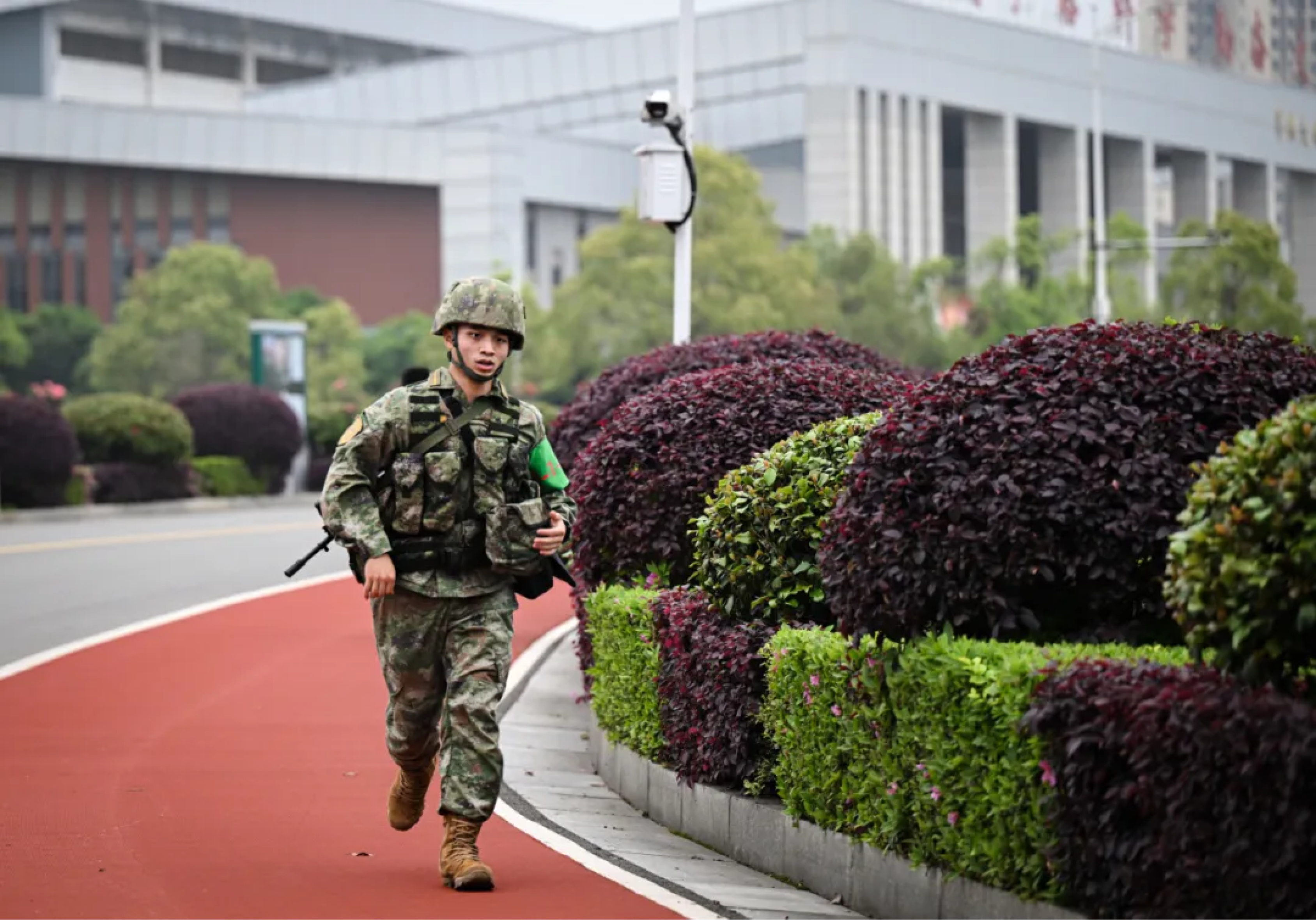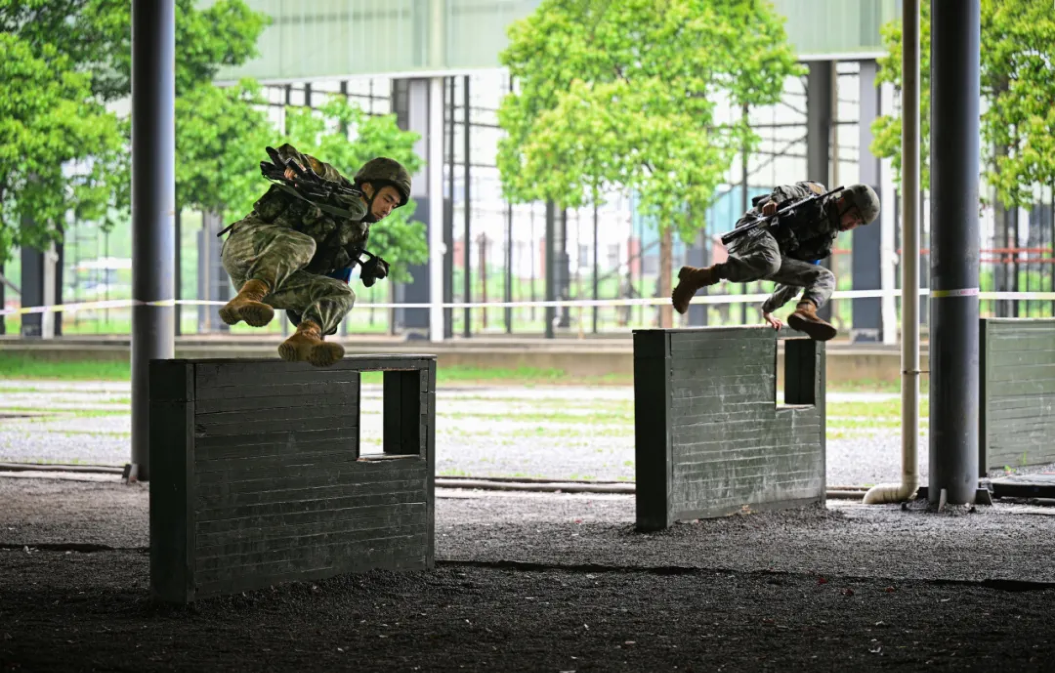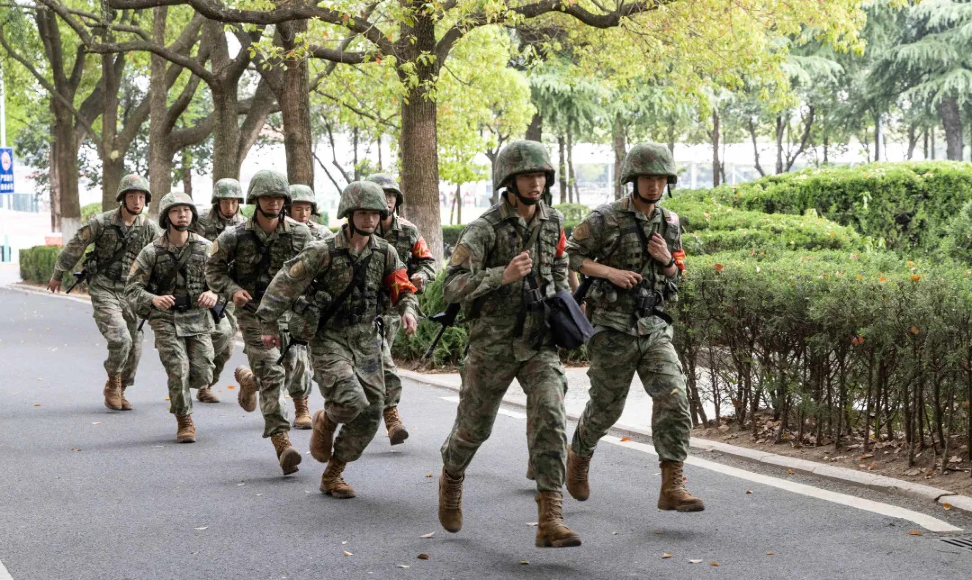 学员们迈开步子 全副武装
