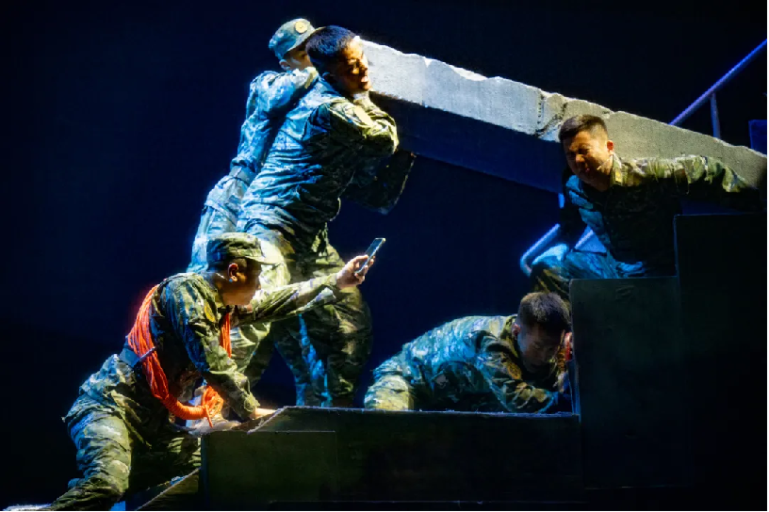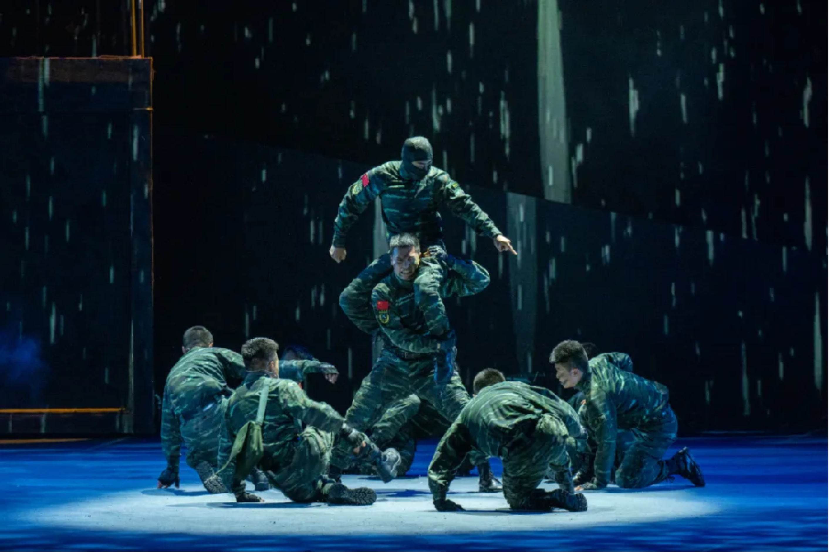 突然,舞台上风雪交加,授课人带领在场官兵来到了长年冰封、气候恶劣的昆仑山深处。
