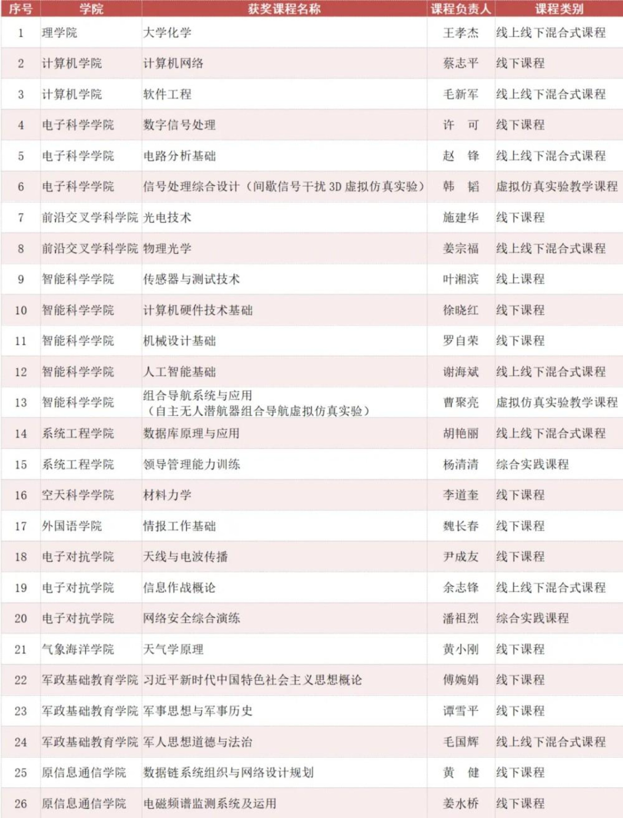 截至目前,学校本科课程共获评国家级一流课程75门(占军队院校总数的25.95%)、军队级精品课程61门、省级一流(精品、示范)课程215门次。