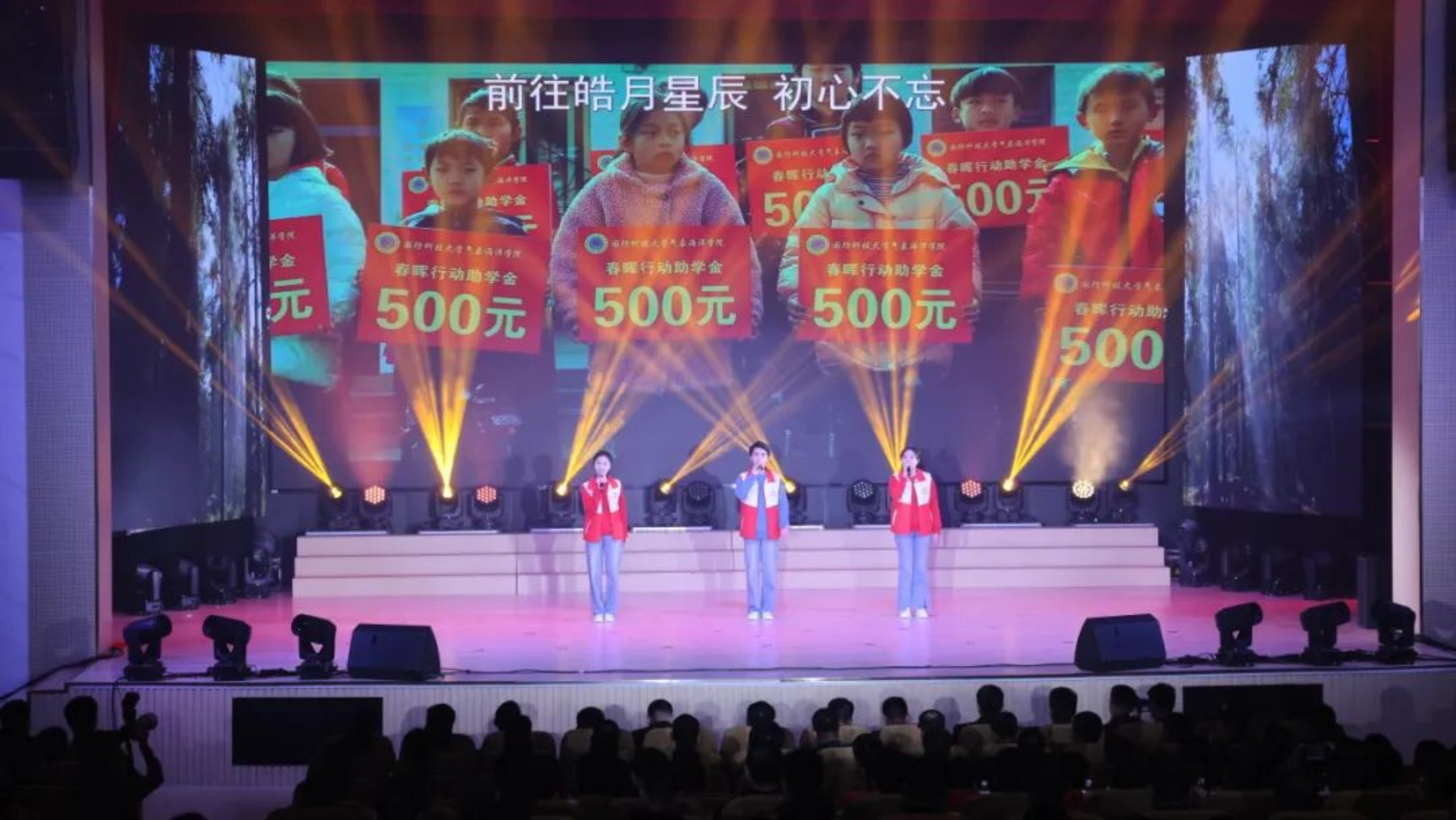 歌曲表演《有我》讲述了学院十年如一日坚持开展“春晖行动”,接续不断助力贵州边远山区学校的感人事迹。