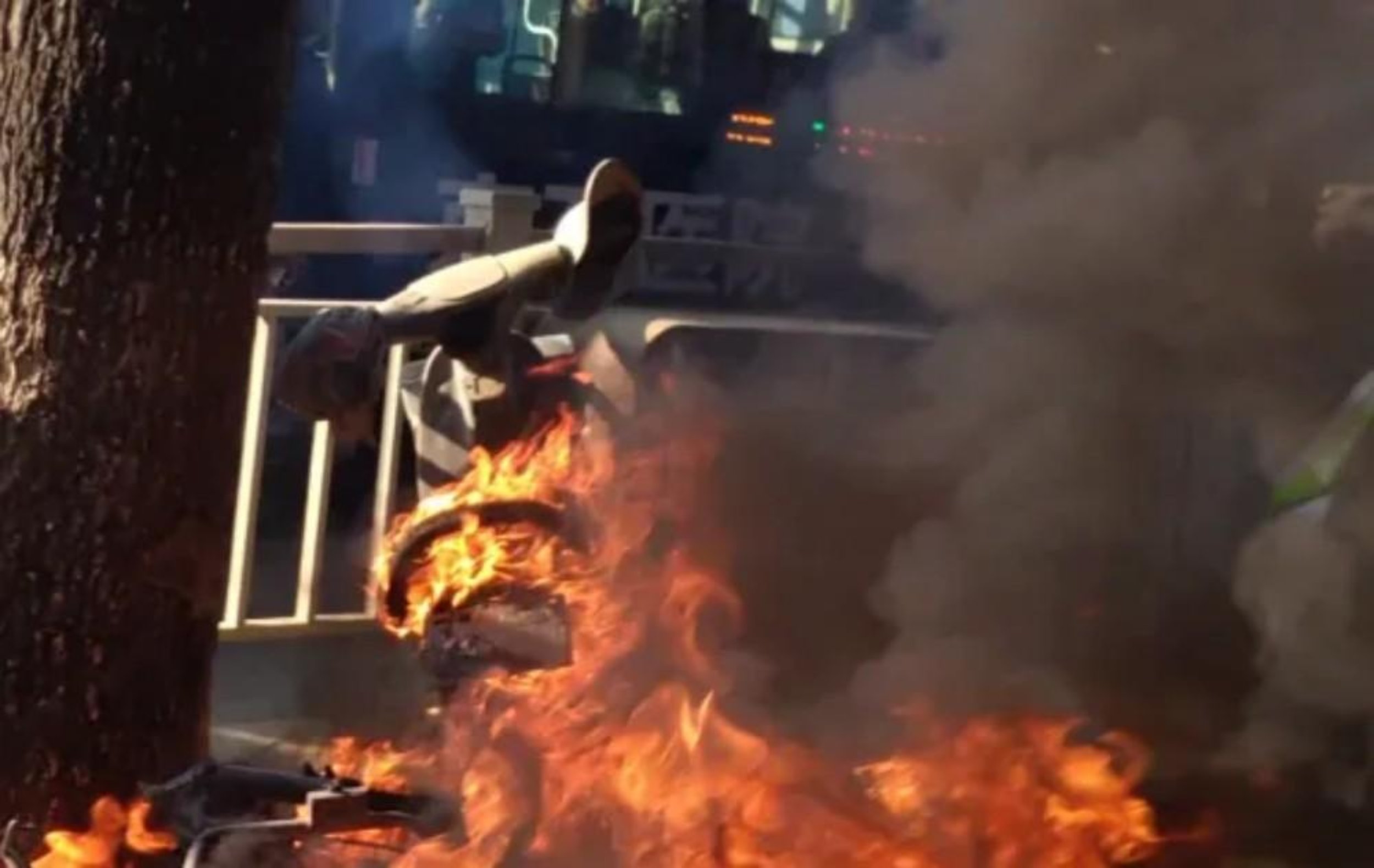 国防科大北门外,两辆共享电动车突然起火自燃,火光与浓烟打破了清晨的平静。正在执勤的北门副岗和驻地值班员没有丝毫犹豫,瞬间化身“第一应急力量”。提起灭火器冲向现场,一边冷静地扑灭火源,一边迅速疏散周围人群,直到消防车呼啸而至,他们仍在现场协助警戒。他们沉着果断地处理,有效保证了人民群众的生命财产安全,生动诠释了“第一道防线”的真正意义。