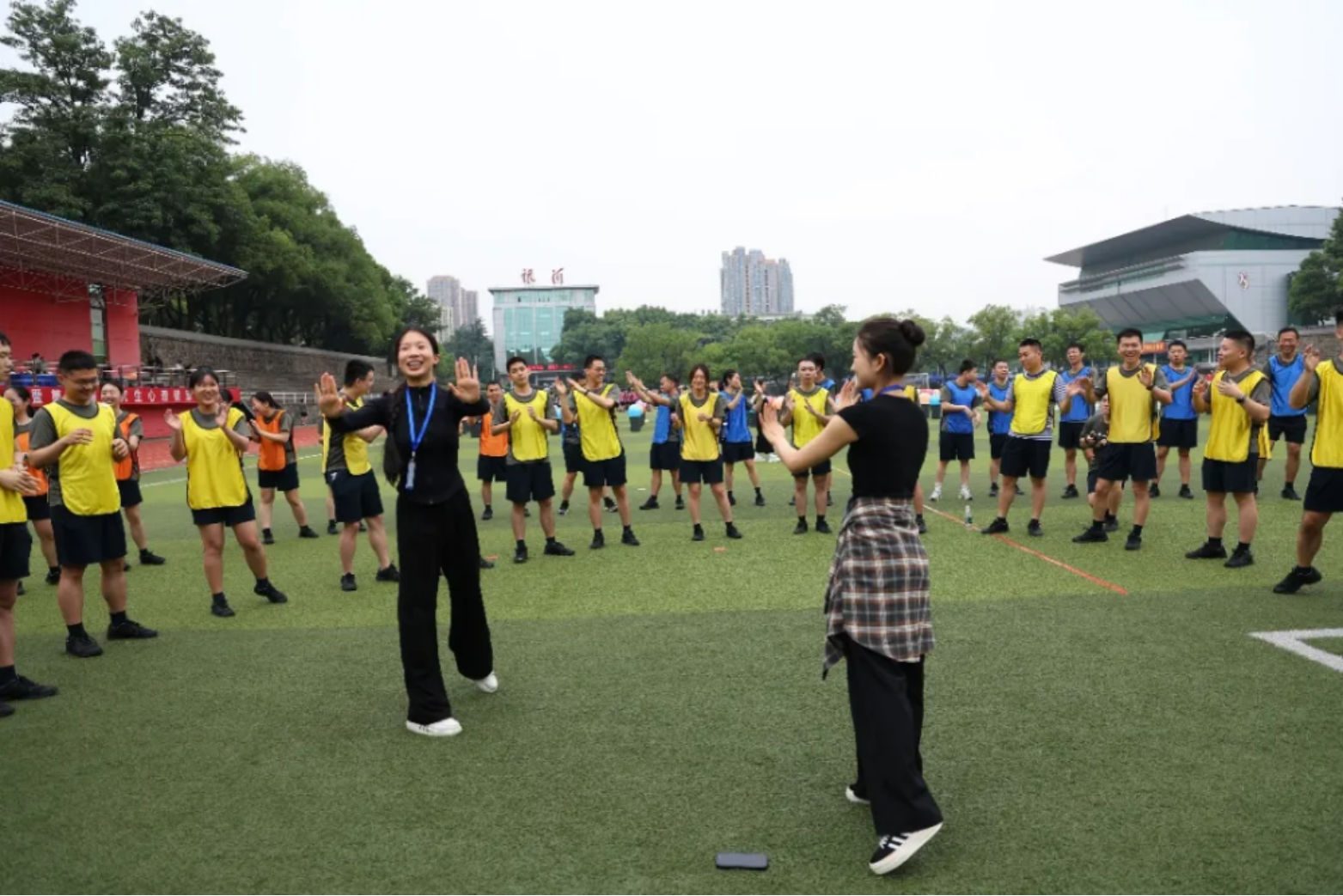 鼓点声声震军心。有氧鼓开场点燃热情,专业导师带领全体学员随鼓点律动。空鼓共鸣如战鼓催征,不仅敲开陌生的坚冰,更让青春的心跳与强军的节拍同频共振。当身体在律动中舒展,心灵的枷锁亦随之轻解,一场充满活力的心灵奇旅就此启程。