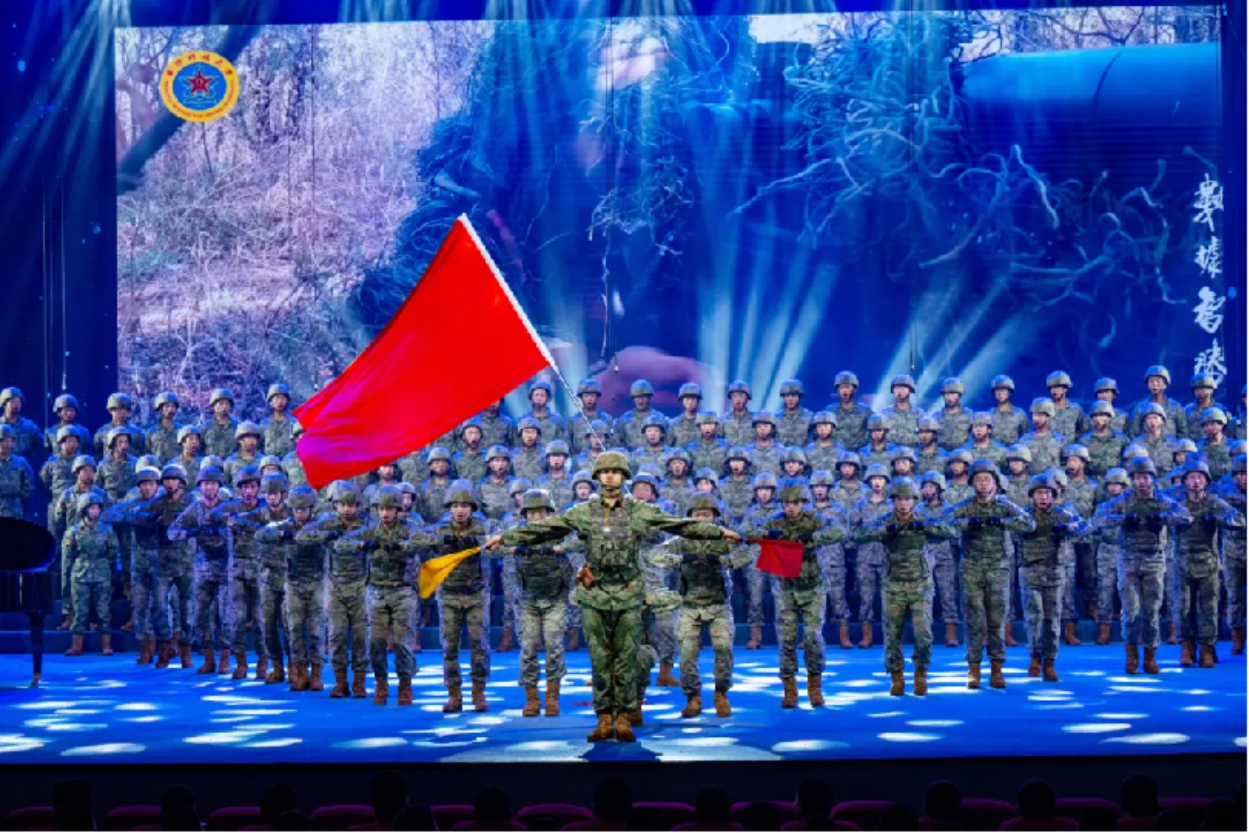 伴随着学校军人合唱团带来的歌曲