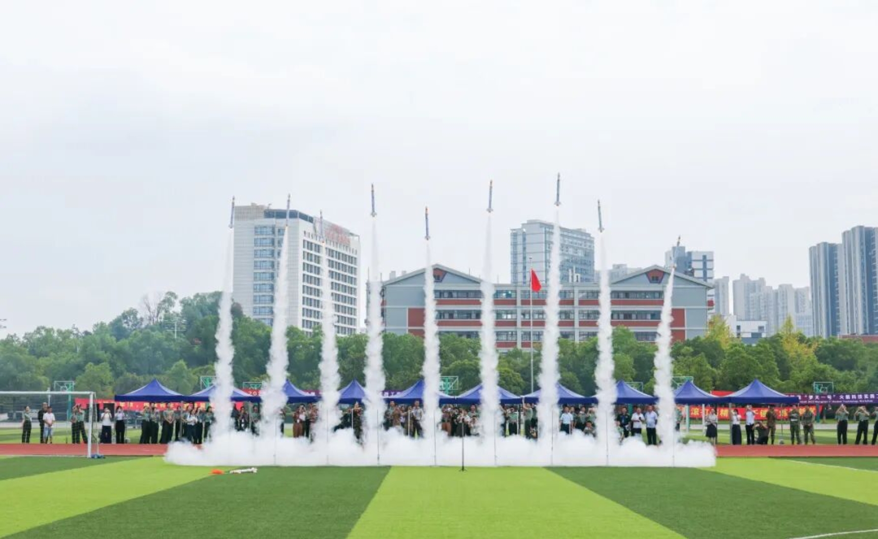 一枚枚记录着中外学员名字的火箭飞上天际